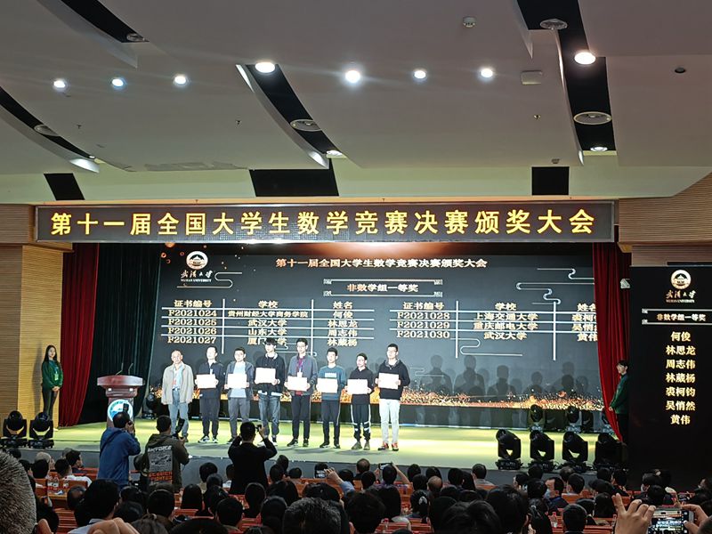 热烈祝贺我校学子在第十一届全国大学生数学竞赛中喜获佳绩!2021年4月17-19日,第十一届全国大学生数学竞赛决赛在武汉大学举行。在星空(中国)的精心组织和指导老师的悉心指导下,我校9名学生共获得一等奖2个,二等奖3个,三等奖4个。