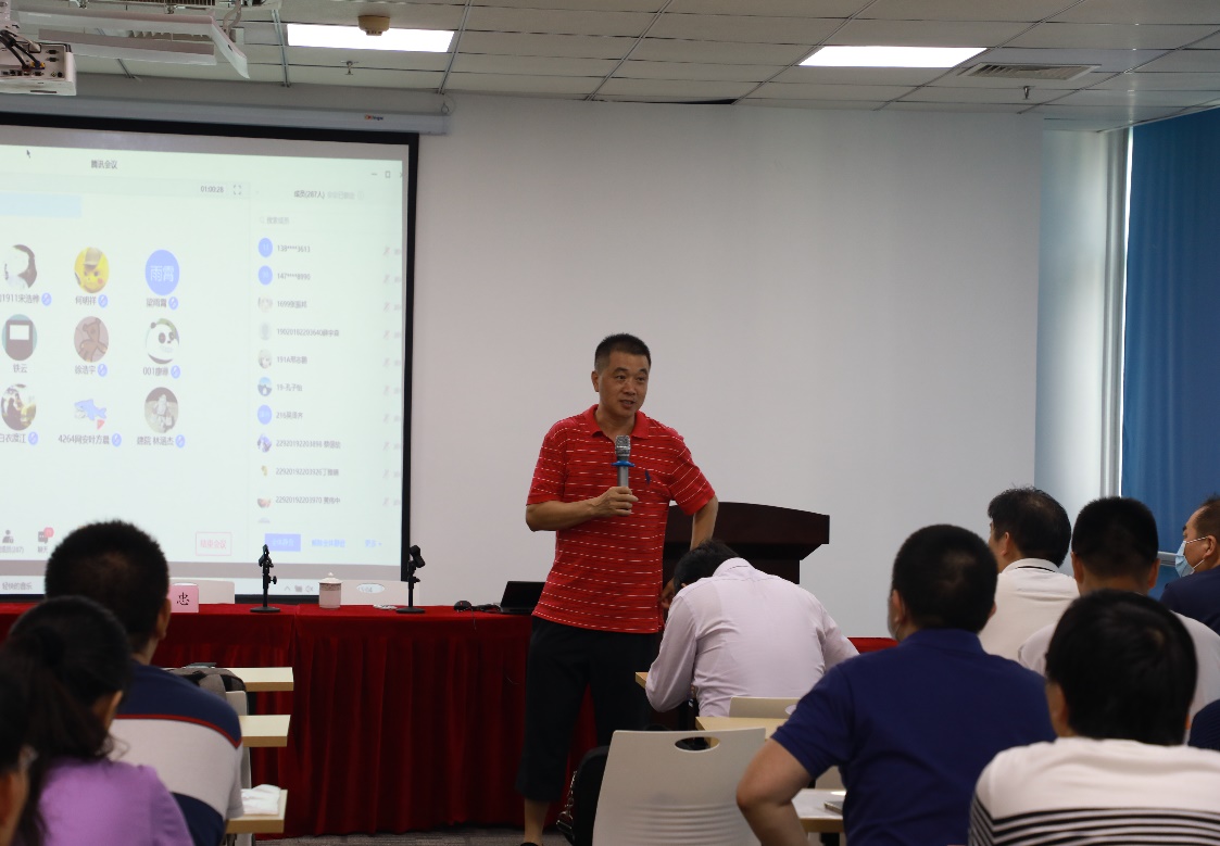 7月26日上午,赛区组委会秘书长伍火熊教授大家做了“2019年全国大学生数学建模竞赛福建赛区工作总结”报告。福建赛区组委会主任谭忠教授,做了题为《数学建模与科学研究及“疫情防控期”数学建模培训的开展》的报告,对如何结合数学建模开展科学研究、疫情防控期如何开展数学建模培训等工作给出了指导性建议。26日会议下半程,各高校建模指导团队代表就各自学校的数学建模培训和竞赛开展工作经验进行交流和分享,并对“疫情防控期”数学建模竞赛培训的招生宣传、模式探讨、参赛组织形式进行广泛的讨论。
