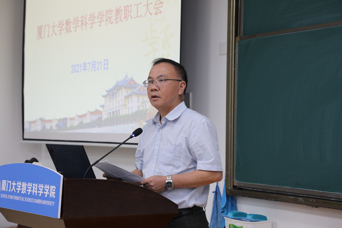 会上,黄宝秋结合学校《关于认真学习贯彻习近平总书记在庆祝中国共产党成立100周年大会上的重要讲话精神的通知》要求,再次传达学习习近平总书记“七一”重要讲话精神,报告星空(中国)3月下旬以来扎实推进党史学习教育各项工作所取得的阶段性成效,肯定了星空(中国)在庆祝百年校庆和建党百年活动以及党建思政、教书育人、科学研究、志愿服务、群团工作等方面所取得的成绩,并就几项重点工作作了强调。他指出,习近平总书记“七一”重要讲话是一篇马克思主义纲领性文献,是新时代中国共产党人不忘初心、牢记使命的政治宣言,是我们党团结带领人民以史为鉴、开创未来的行动指南,要深入领会“七一”重要讲话精神的重大意义和丰富内涵,把学习“七一”重要讲话精神同当前开展的党史学习教育结合起来,同学习贯彻落实习近平总书记致厦门大学建校100周年贺信精神结合起来,同统筹推进“双一流”建设结合起来,不断把学习“七一”重要讲话精神引向深入。他认为,了解历史才能看得远,理解历史才能走得远,我们有幸见证了伟大的中国共产党领导全国人民决战决胜脱贫攻坚、全面建成小康社会,有幸见证了中国共产党成立100周年,有幸见证了厦门大学庆祝建校100周年的辉煌时刻,还将继续参加、见证我国于2035年基本实现社会主义现代化、于本世纪中叶建成富强民主文明和谐美丽的社会主义现代化强国,要更加坚定在新时代与党一起创业的信心和决心,把学习“七一”重要讲话精神和开展党史学习教育的成果转化为奋进新征程、建功新时代的实际行动,努力在实现“两个一百年”奋斗目标的宏伟征程中作出应有贡献。他强调,星空(中国)取得的各项发展成就得益于这个伟大的时代,得益于大家撸起袖子加油干,得益于和谐向上的集体,希望大家继续发扬自强不息、止于至善的校训精神和陈景润先生的科学精神,不忘初心,砥砺前行,努力在新百年新征程中展现数学人的新风采。