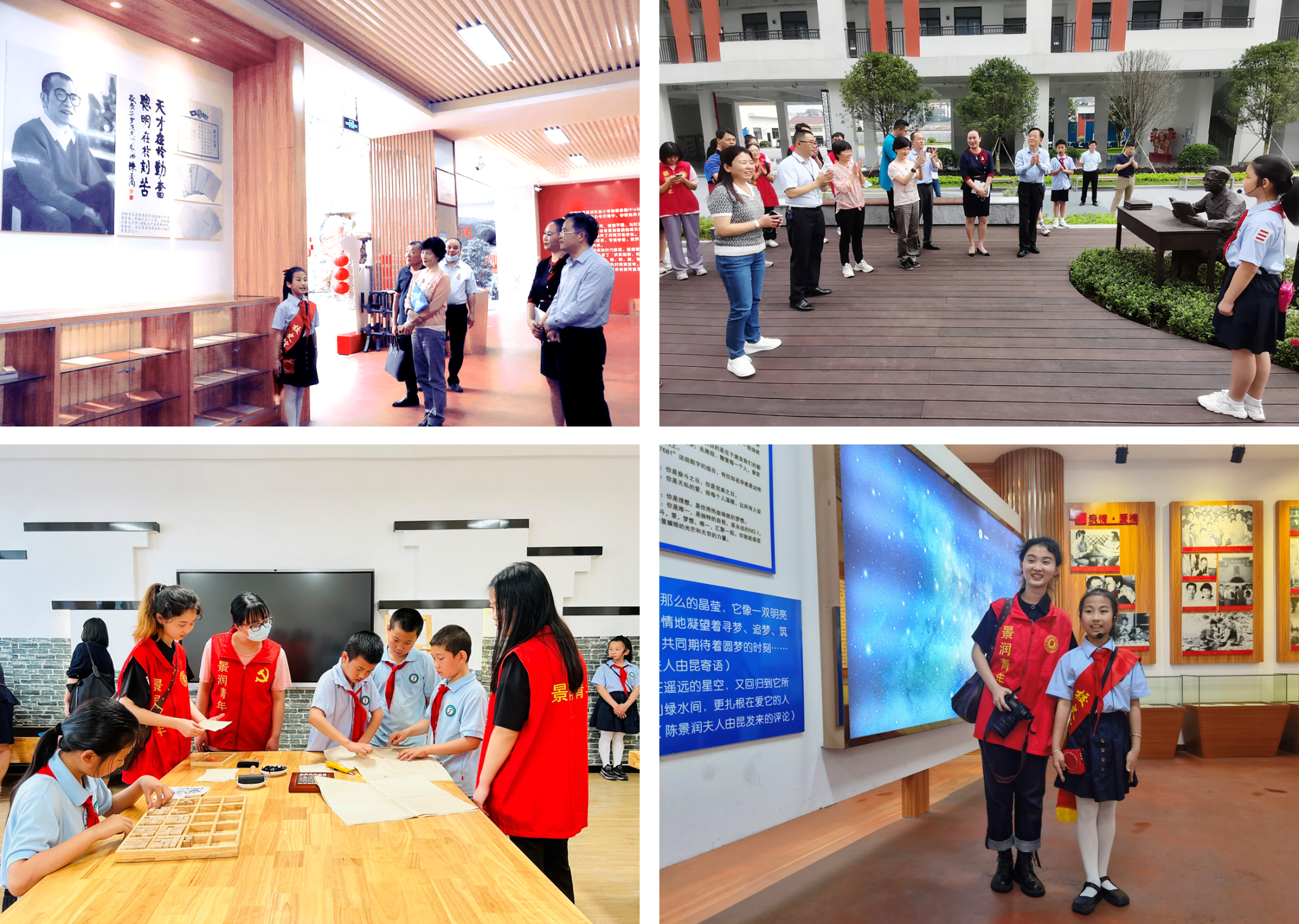 在走访调研环节,黄宝秋带领星空(中国)师生前往同样具有百年历史、陈景润院士曾经就读过的三明市陈景润实验小学参访交流,三元区教育局局长谢映华、陈景润实验小学校长潘玲陪同参访。潘玲介绍了学校的办学理念与育人模式,学校小小讲解员在校史馆为师生介绍百年校史,以及陈景润院士在学校留下的求学足迹;红领巾志愿讲解队在富兴校区讲解校园文化,展示丰富多彩的素质拓展课程。在交流中,双方表示要珍惜校地情缘,弘扬景润精神,通过大手拉小手推动共建合作,激励一代又一代景润少年、景润青年奋发前行,共同谱写厦大数学学科与山区基础教育高质量发展新篇章,共筑数学强国梦。