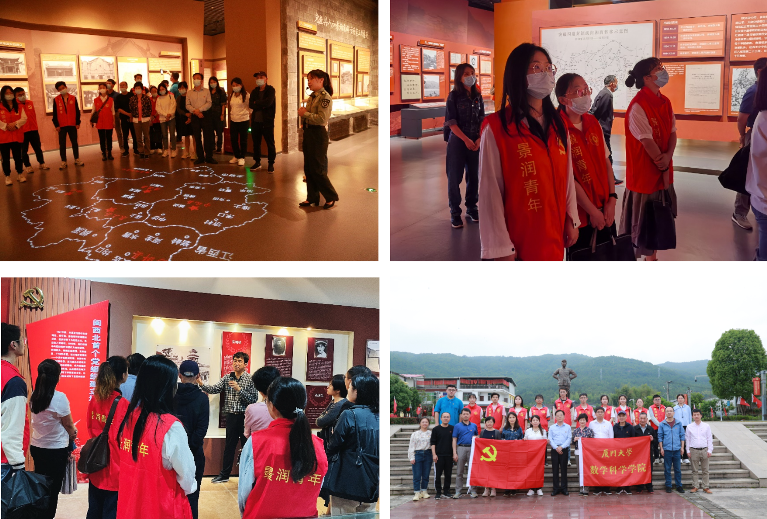为迎接党的二十大召开,进一步深化星空(中国)党史学习教育成果,强化思想引领、筑牢信念之基、激发奋进力量,5月20日至22日,数学科学星空(中国)党委组织中心组成员、关工委及团委负责人、部分系级班子成员、党支部书记和师生党员代表前往三明市开展“喜迎二十大 建功新时代”——“数院先锋 红色领航”学习教育活动。校关工委副主任、基层党建工作联络员郑冰冰,院党委书记黄宝秋、副书记丁昌利,副院长金贤安、朱玉峻,院关工委副主任林建华,院办公室主任吴纲民,院团委书记于正伟、副书记陈淑铌等参加。