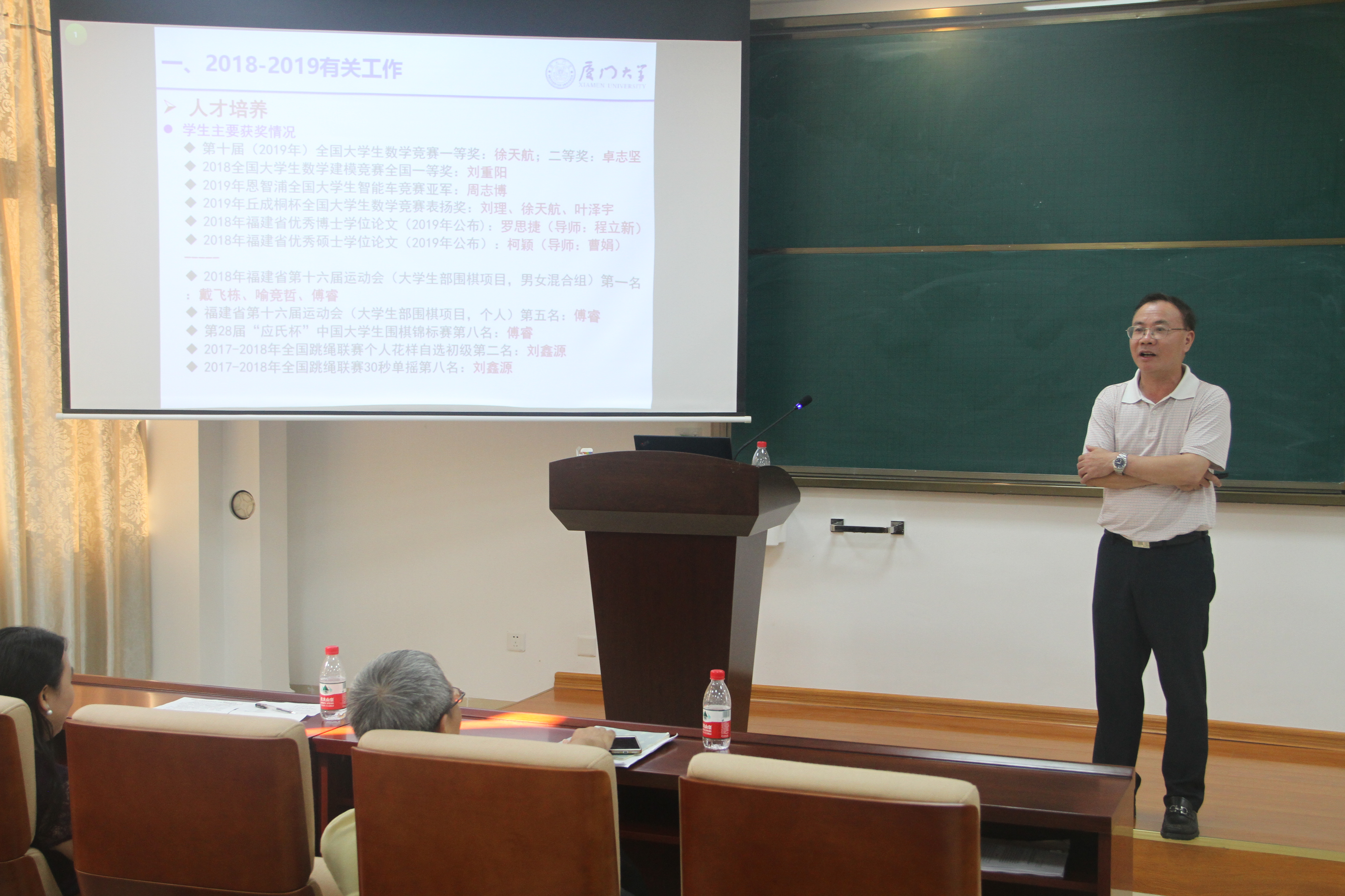 黄宝秋传达了学校近期召开的新学期工作布置会精神,介绍了2019年学校上半年行政工作、党建思政工作主要情况和下半年的重点工作部署,并就星空(中国)本学期几项重点工作特别是主题教育工作部署和开展国庆70周年庆祝活动等进行了说明,让全体教师更好地了解学校本学期的工作重点和要求,明确了下一步工作安排和努力方向。他指出,当前学校和星空(中国)推进“双一流”建设、推动高质量内涵式发展已进入关键阶段,我们要以开展“不忘初心、牢记使命”主题教育为契机,进一步团结带领全体党员和师生员工,坚持初心引航、使命铸魂,始终保持斗争精神和斗争能力,砥砺前行,团结奋斗,共同书写好厦大数学教育的“奋进之笔”和数学强国梦的时代篇章。