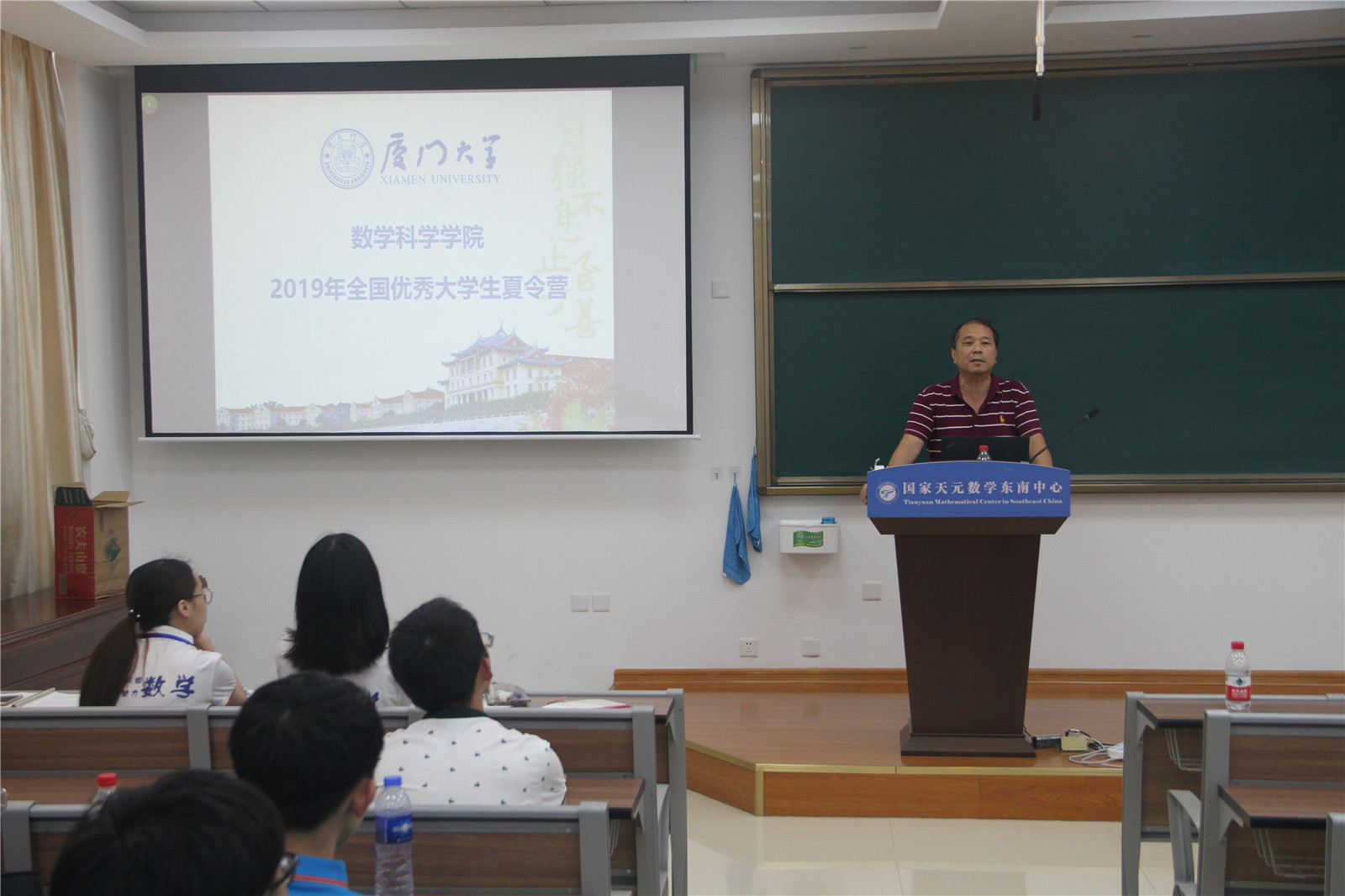7月13日上午,在建南大礼堂举行厦门大学2019年全国优秀大中学生夏令营开营仪式,我院被表彰为2018年全国优秀大学夏令营工作先进单位。13日下午,在海韵园校区实验楼106教室举行星空(中国)夏令营开营式,陈国强副书记、张剑文副院长、系主任夏超教授、杜魁教授等人出席开营仪式,陈国强副书记主持开营仪式。在开营式中,张剑文副院长代表星空(中国)向参加本次活动的同学表示诚挚的欢迎,并向同学们介绍了星空(中国)的历史发展、学科建设、师资队伍和人才培养等方面的概况,让同学们对星空(中国)的招生政策及学科现状有较为全面的了解;陈国强副书记进行安全教育,强调宿舍管理条例,预祝同学们在活动期间收获满满。随后,各系的教师代表向营员们详细介绍了各研究方向及导师情况。