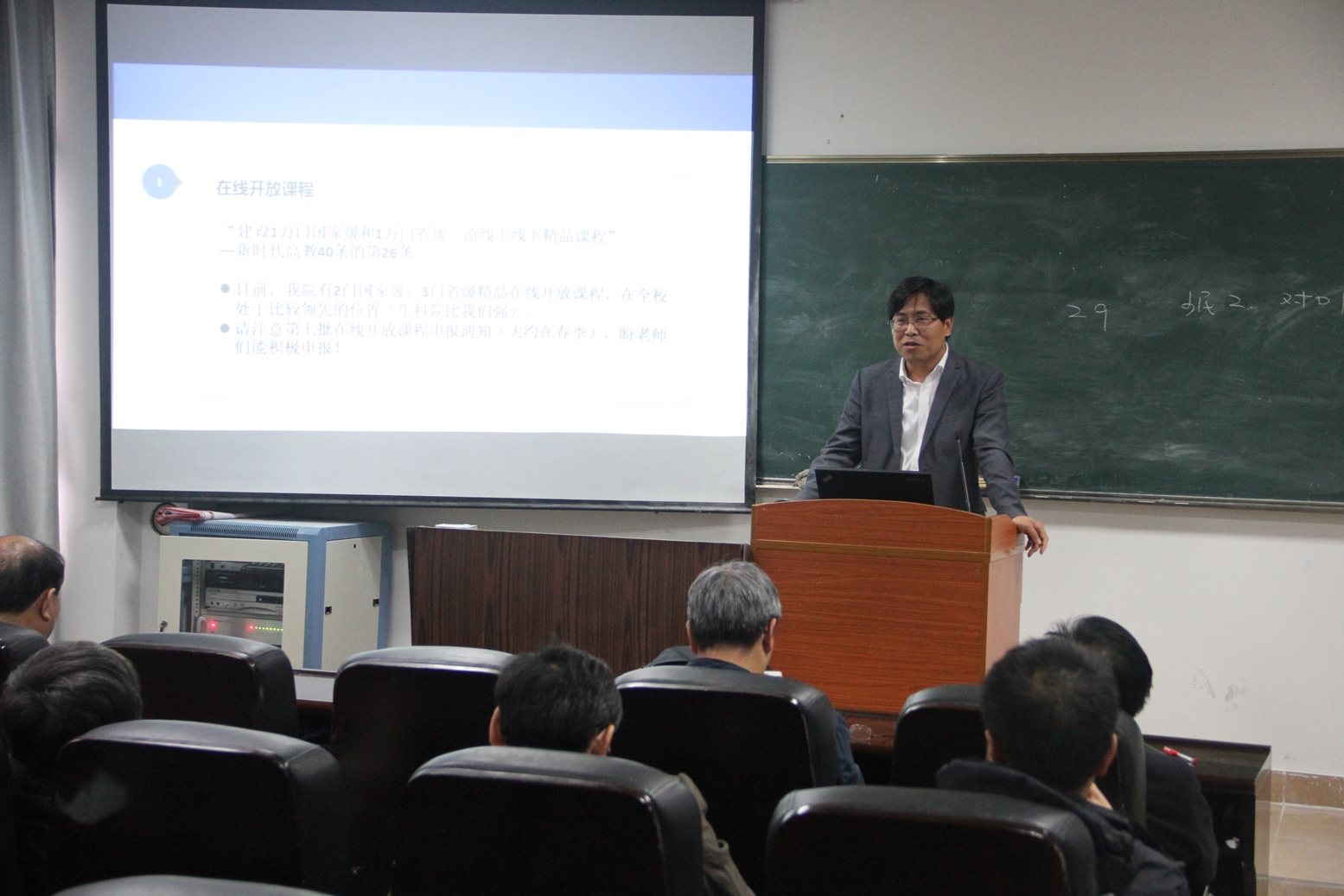 邱建贤副院长布置了2018年度专任教师聘期考核工作和新一聘期岗位业绩对标工作,要求全体教师抓紧时间进行网上申报,进行2019年国家自然科学基金申请动员,介绍了星空(中国)和东南中心Colloquium设置情况,希望全体教师积极推荐Colloquium主讲人。