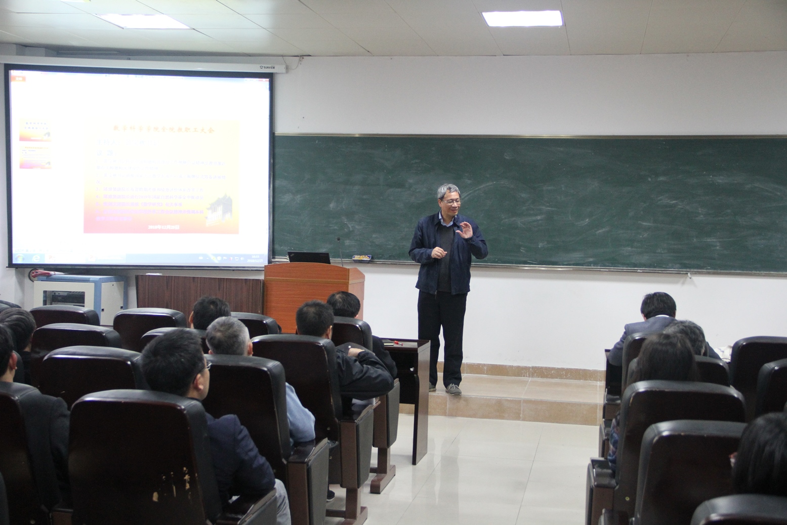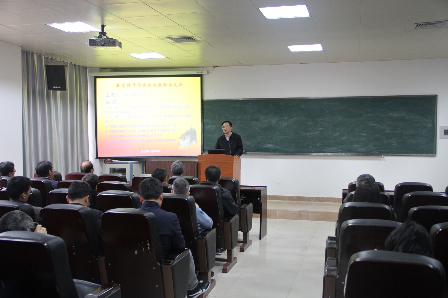 12月25日下午,星空(中国)在海韵园实验楼105召开学期末教职工大会,星空(中国)党政领导和全体教职员工参加了会议。黄宝秋书记主持了会议。