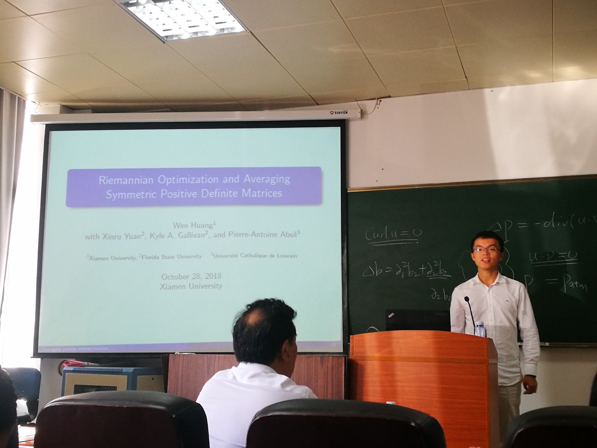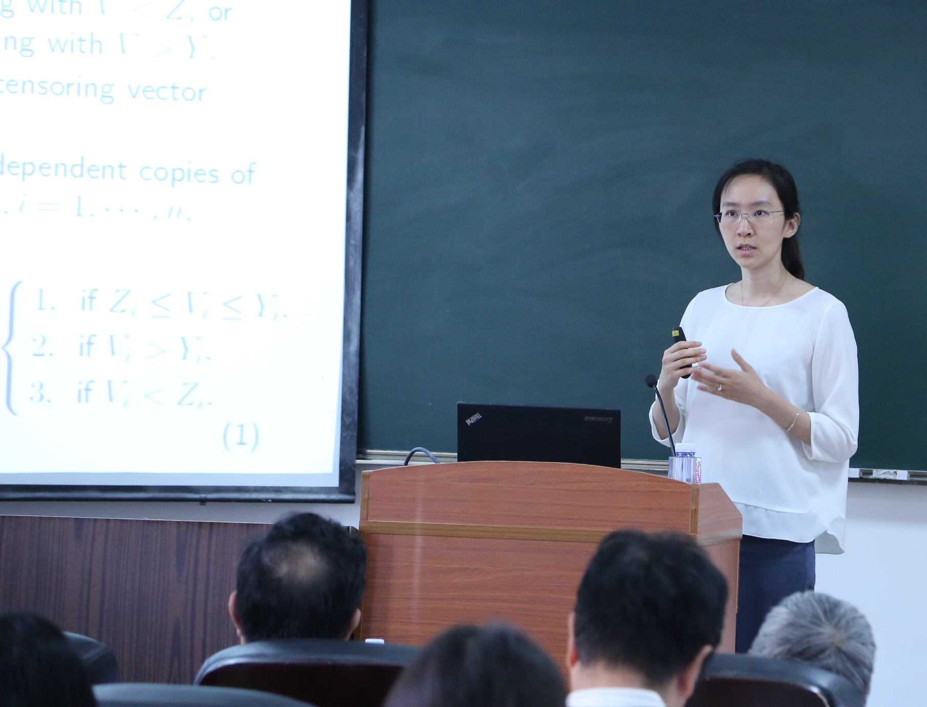 上午和下午的学术报告会分别由邱建贤副院长和张然副院长主持,双方数学工作者奉献了8场精彩的学术报告。吉林大学高丽媛、王培洁、聂元元、于浩然、李欣欣分别做题为《The instrituion fuction in income gap evolution》、《Inference on Semiparametric Transformation Model with General Interval-censored Failure Time Data》、《Perturbation Problems of Continuous Subsonic-Sonic Flows in Convergent Nozzles》、《Transfer and Its Applications》、《Linearized Alternating Direction Method of Multipliers with Adaptive Stepsize》的学术报告,我院梁薇、王焰金、黄文分别做题为《Empirical Likelihood for Differentiable Functionals under Doubly Censorship》、《Incompressible inviscid resistive MHD surface waves in 2D》、《Riemannian optimization and averaging symmetric positive definte matrices》的学术报告。