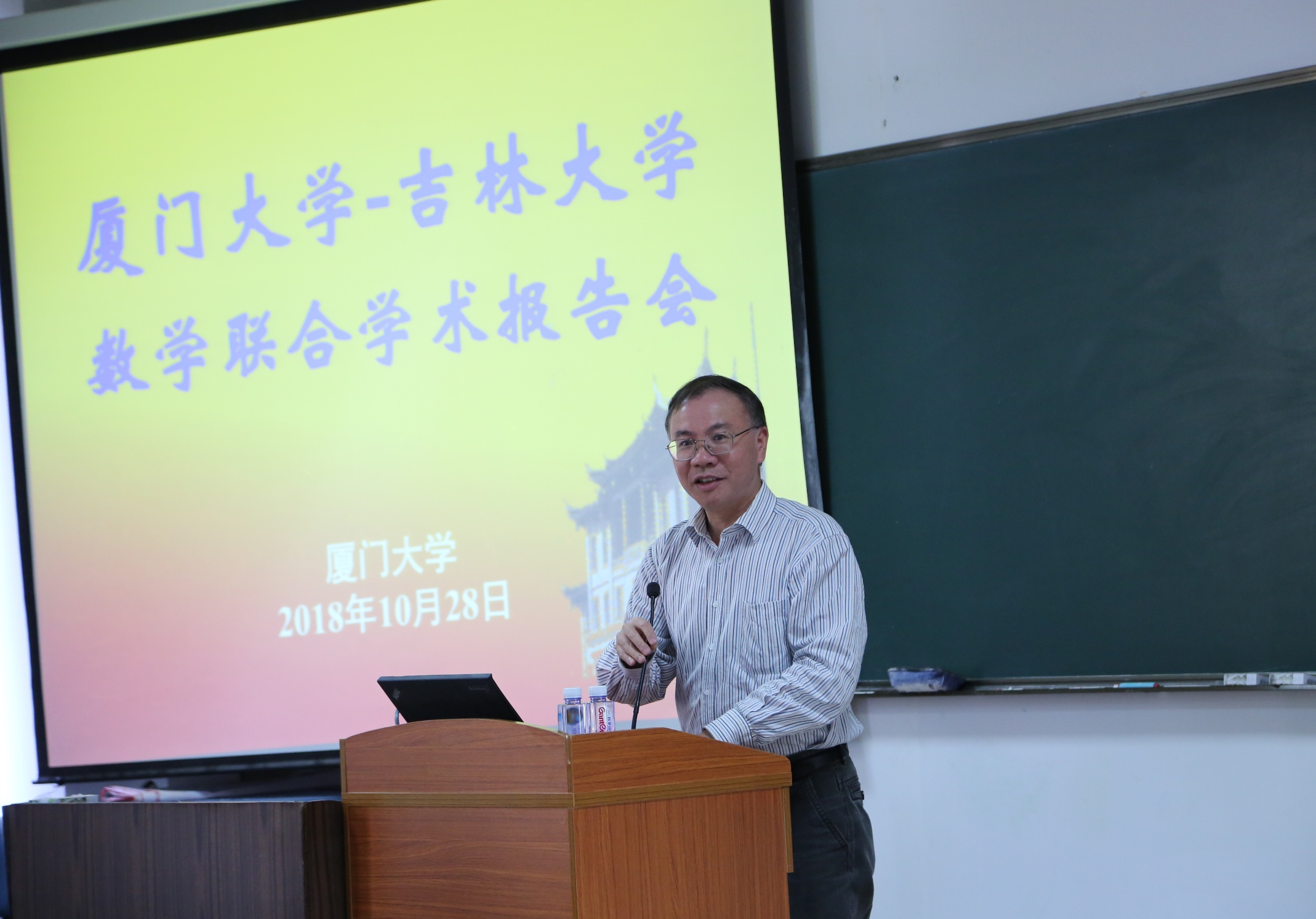 10月28日,厦门大学-吉林大学数学联合学术报告会在海韵园实验楼105举行,吉林大学数学科学星空(中国)李辉来院长、王德辉副院长、张然副院长、陈续升副院长等一行13人参加了本次活动;我院谭绍滨院长、陈国强副书记、张剑文副院长、邱建贤副院长、金贤安副院长、刘永建副院长和师生代表出席了学术报告会。