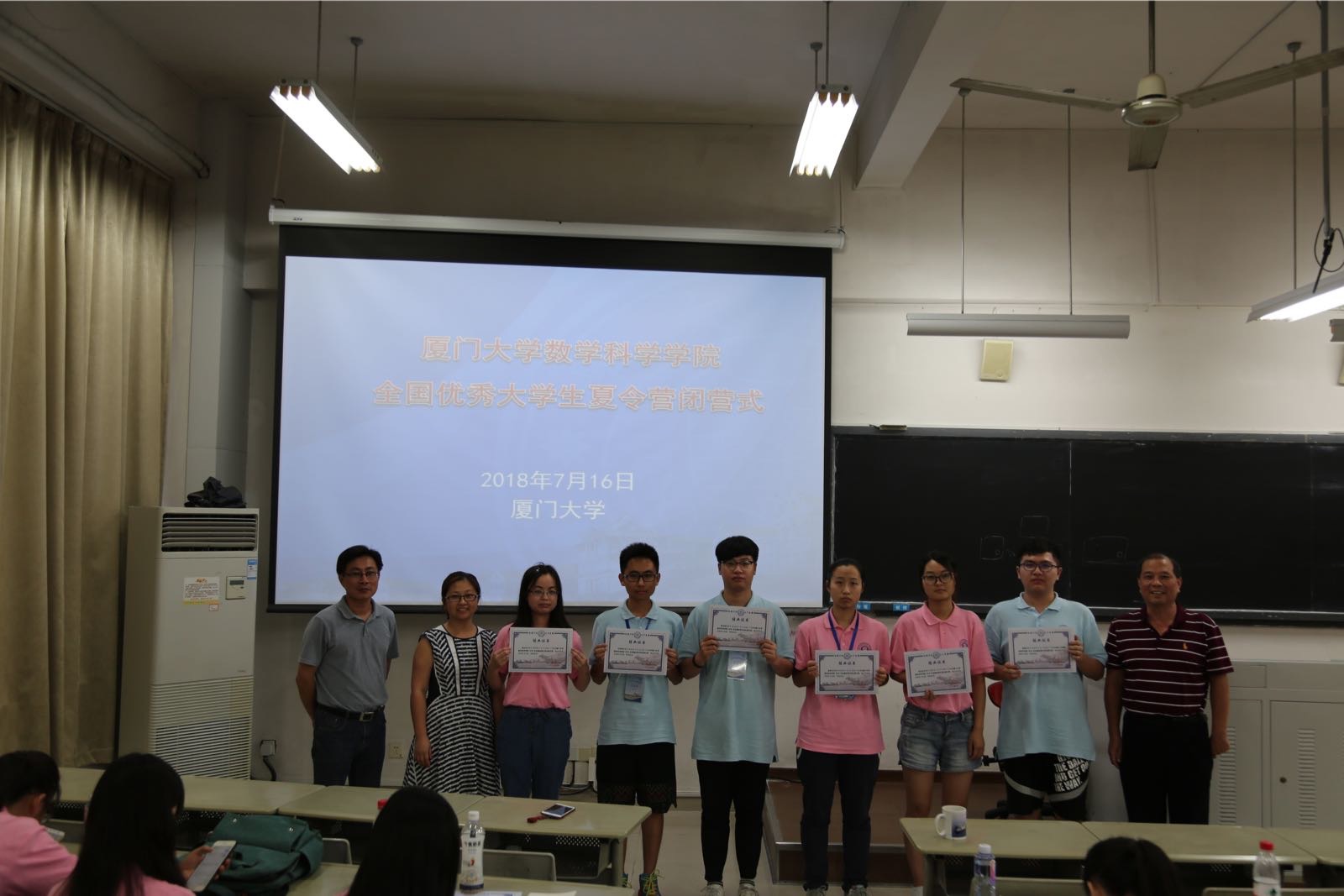 7月16日下午,全体营员参加了学长学姐经验交流会,来自我院的硕士研究生戚啸和彭思从校园生活和专业学习两个方面为营员们讲述了自己在厦大数院的切身体会和心得。会后举行了夏令营的闭营式,星空(中国)党委副书记陈国强对夏令营工作做了总结,并再次希望营员们加盟数学科学星空(中国)。闭营式上,陈国强副书记、张剑文教授和辅导员陈淑铌一同为营员颁发了结业证书。通过几天的活动,同学们对厦门大学、星空网页版登录入口、数学学科各研究方向和发展前沿有了更深入的了解,而且根据自身的情况逐步清晰了自己深造学习的目标规划,许多同学纷纷表达了希望到厦门大学继续深造学习的强烈愿望。