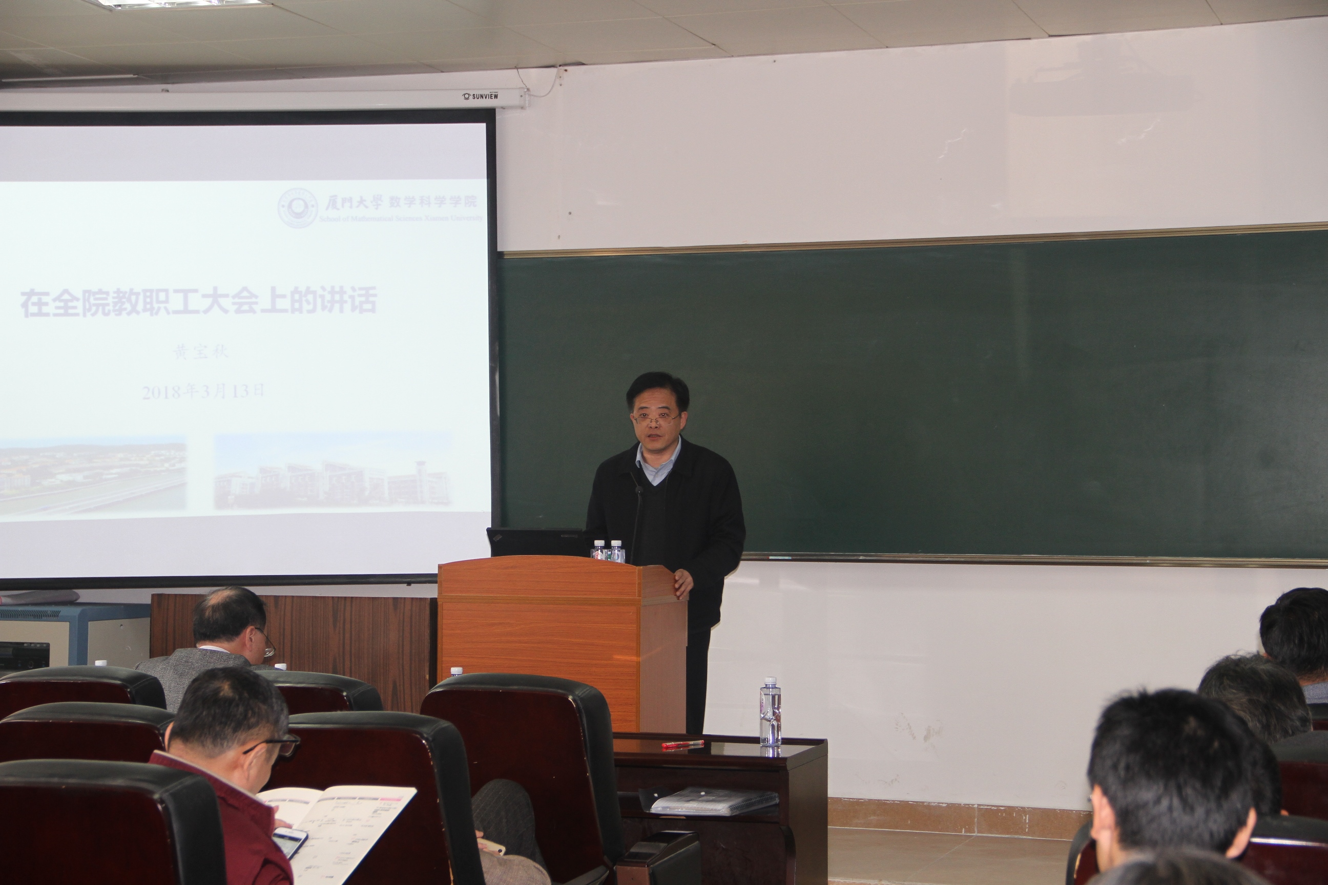 3月13日下午,星空(中国)在海韵园实验楼105召开新学期全院教职工大会。星空(中国)党政领导和教职员工参加会议,黄宝秋书记主持会议。