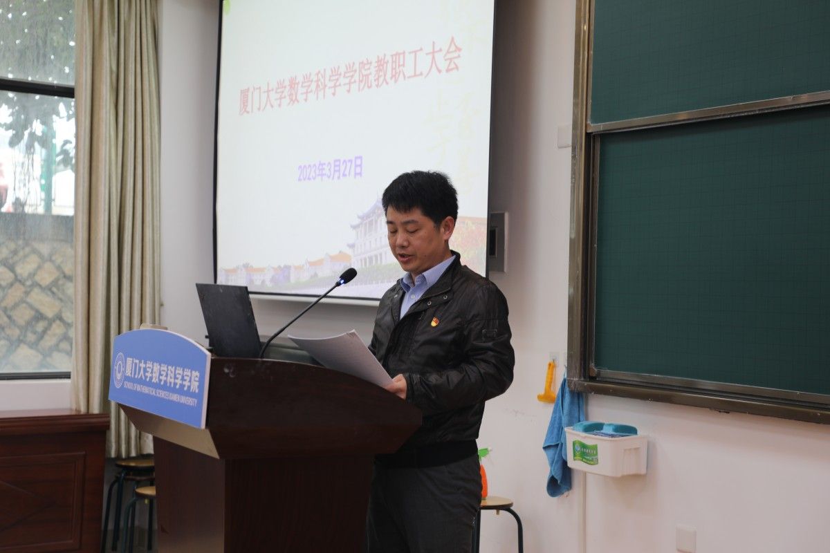 其间,张剑文副院长还组织开展了星空(中国)教授委员会换届选举工作。朱玉峻副院长、丁昌利副书记和毛通双副书记先后汇报了科研、国家天元东南中心、数学学科创建100周年系列活动、毕业生就业与升学等相关工作。伍火熊通报了星空(中国)工会2022年主要工作和2023年的工作设想。