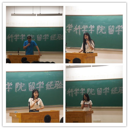 最后,2013级的优秀毕业生李宇家(匹兹堡大学)、李星锦(杜兰大学)、元铭(华盛顿大学)、许清虹(西蒙弗雷泽大学)分别为学弟学妹们分享了他们在申请留学过程中的宝贵经验与奋斗经历。他们的介绍各有侧重,形象生动地向同学们介绍了留学的流程、准备以及注意事项。