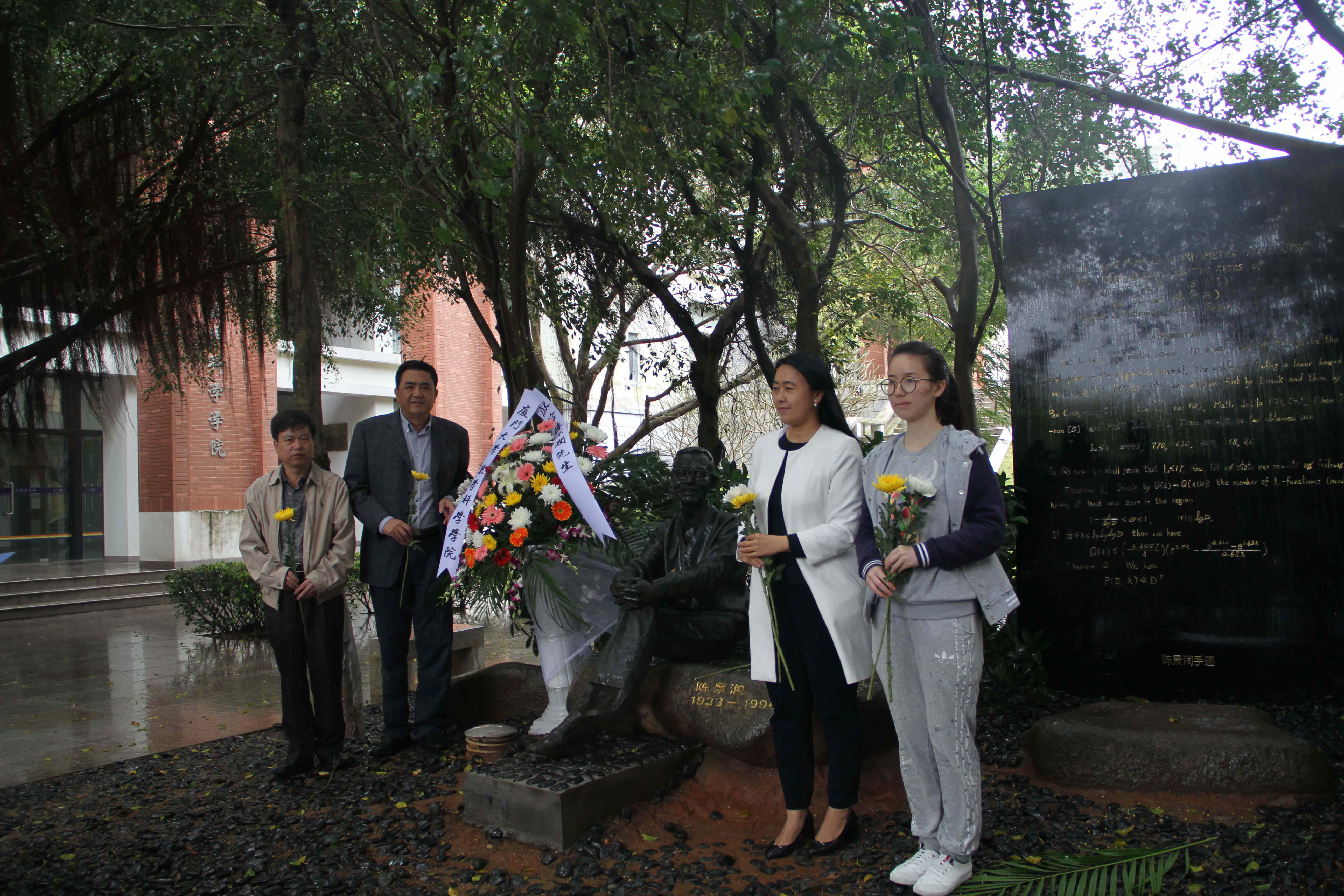 宋力先生、邱春晖副院长、刘宁副书记、学生代表郭欣宸向陈景润铜像敬献花篮,师生代表面向陈景润铜像三鞠躬,依次献上素菊,深切缅怀陈景润先生。