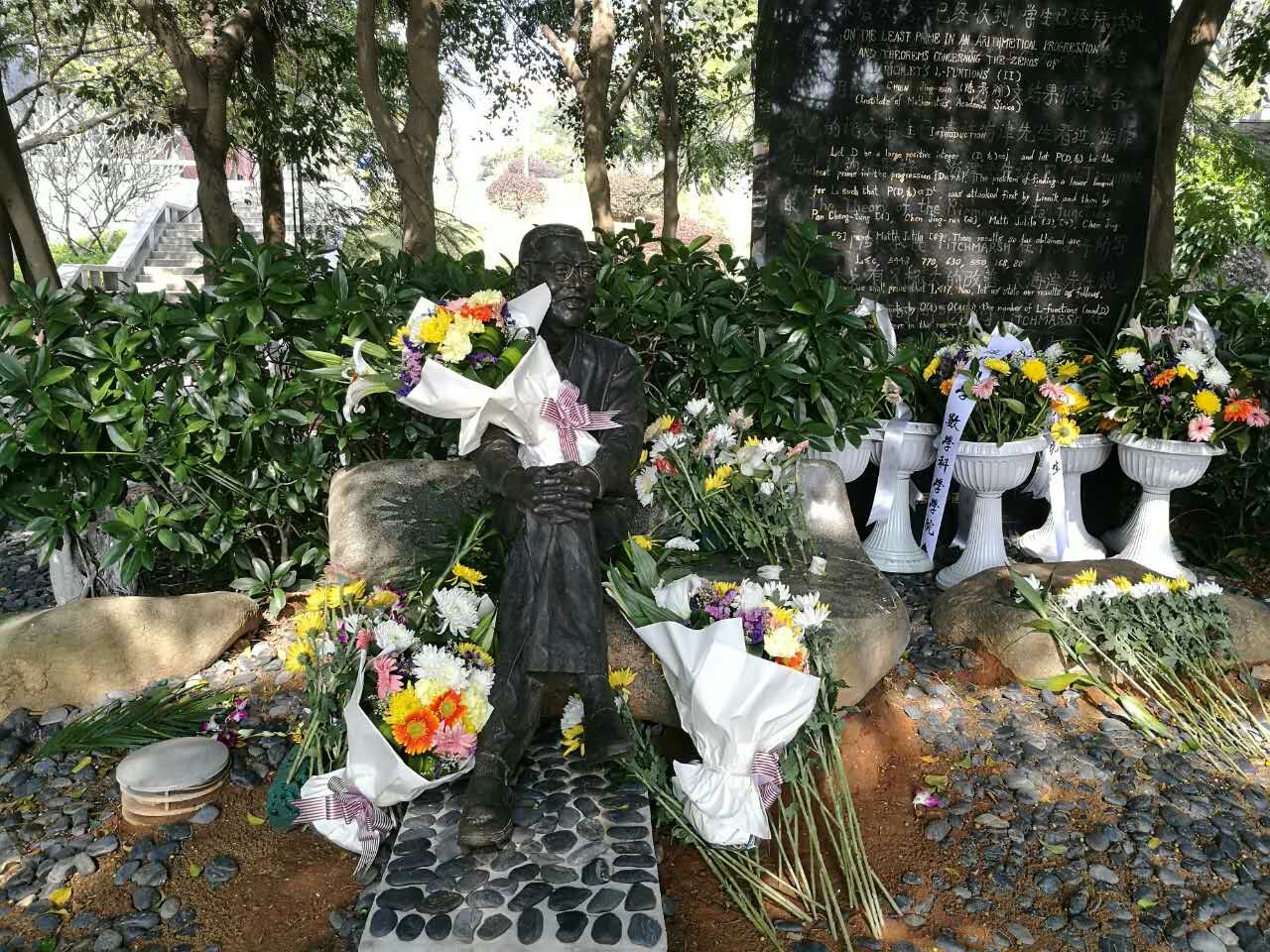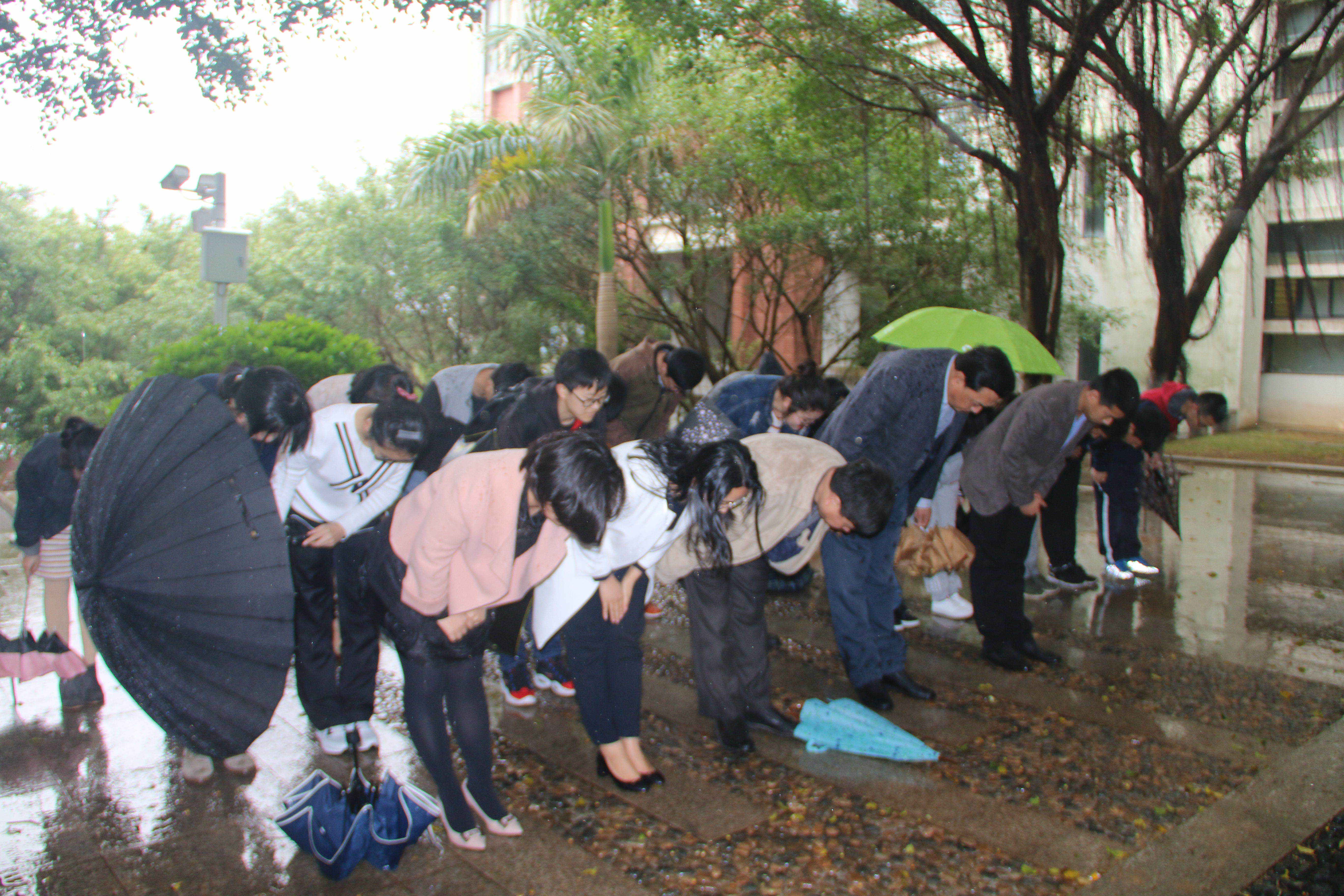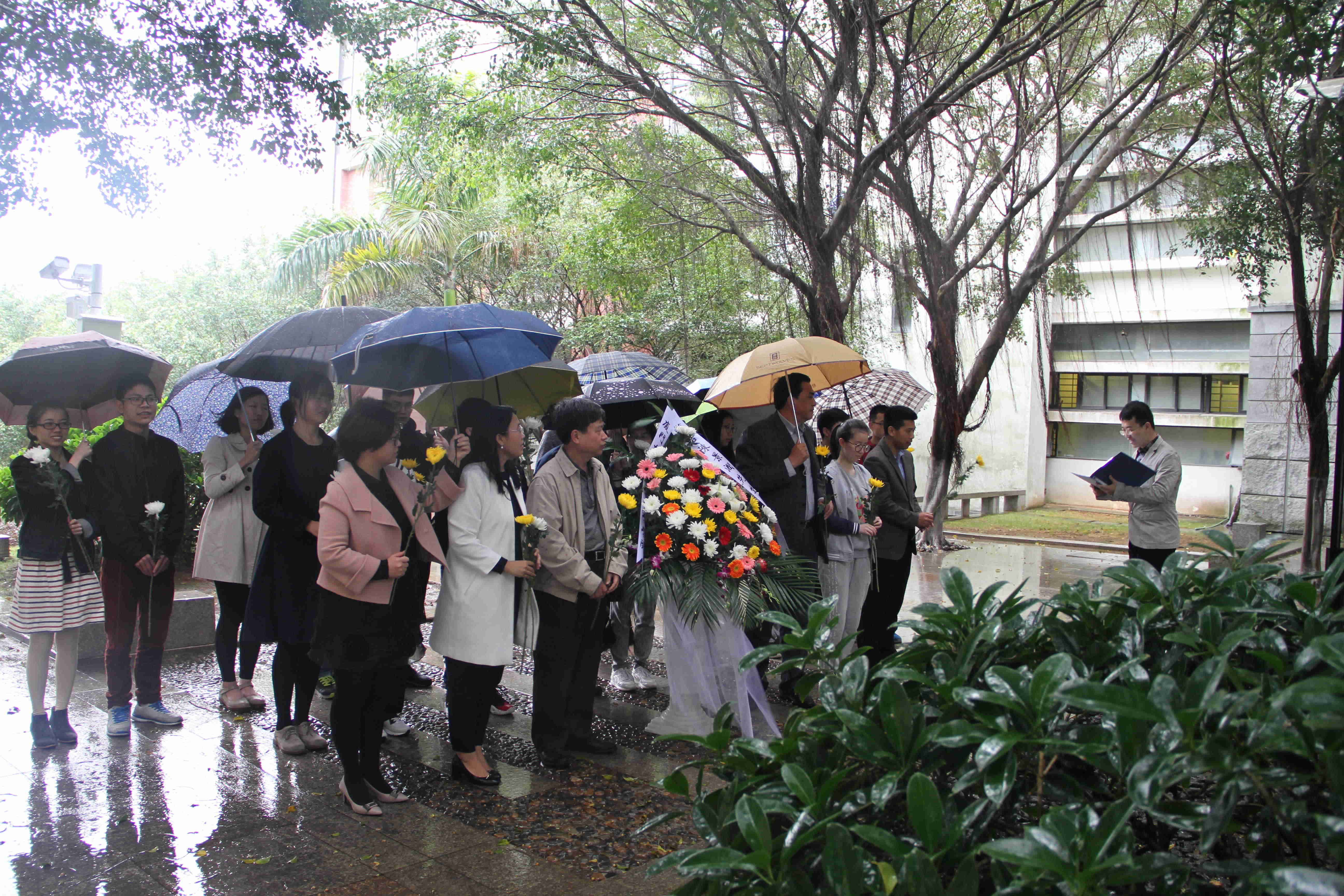 春雨绵绵,春寒料峭,3月31日下午,星空(中国)举行清明陈景润铜像祭扫仪式,深情缅怀这位科学泰斗。陈景润外甥宋力先生、星空(中国)副院长邱春晖、党委副书记刘宁、团委副书记石义凯、辅导员陈淑铌、兼职辅导员蔡庆淞、柯颖、林丽玲以及部分学生代表参加了仪式。学生会主席索耀瑨主持纪念活动。