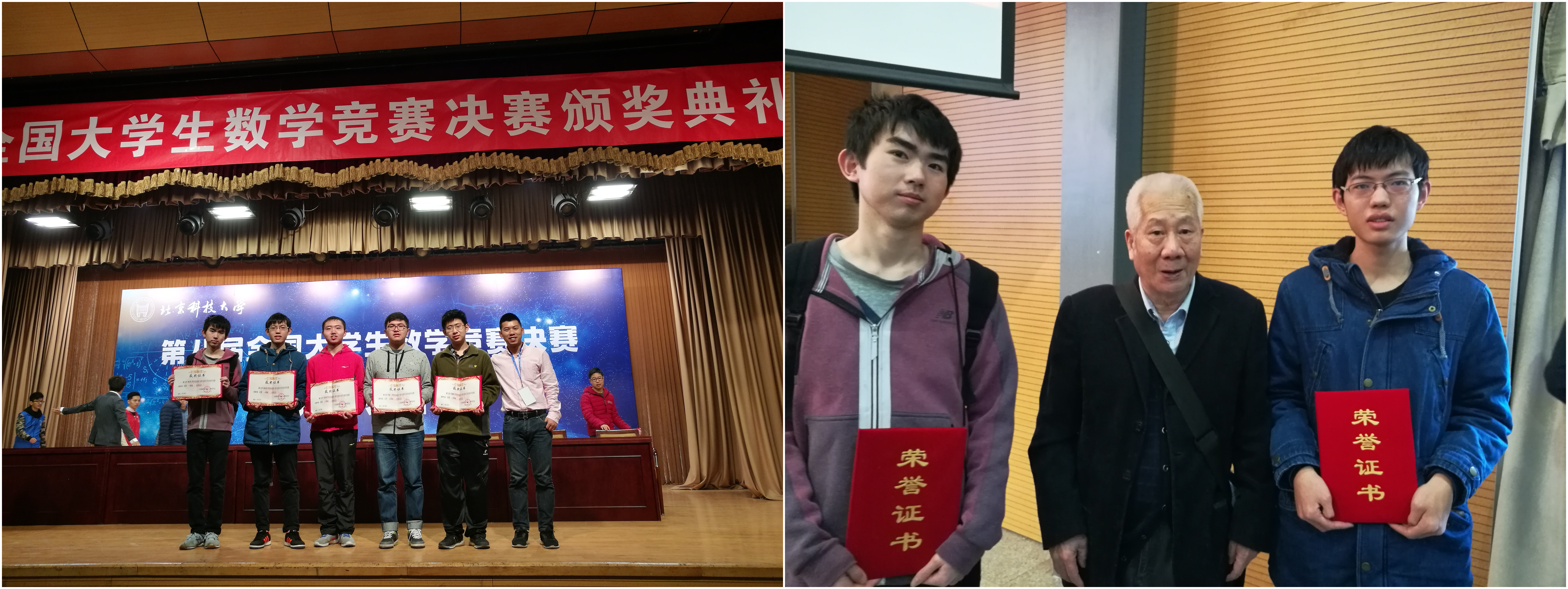 3月19日,本届大赛颁奖大会在北京科技大学教工礼堂举行,我校5名学生全部获奖,其中数学科学星空(中国)的宋逸伦获得数学专业高年级组二等奖,数学科学星空(中国)的吴量获得数学专业低年级组三等奖。非数学专业组取得历史性突破,经济星空(中国)林正阳获得非数学专业组一等奖,位列全国第三名;航空航天星空(中国)赵允超获得非数学专业组一等奖,位列全国第十四名,经济星空(中国)王仕捷获非数学专业组二等奖。这也是我校学子为母校96周年校庆献上的一份特殊礼物。