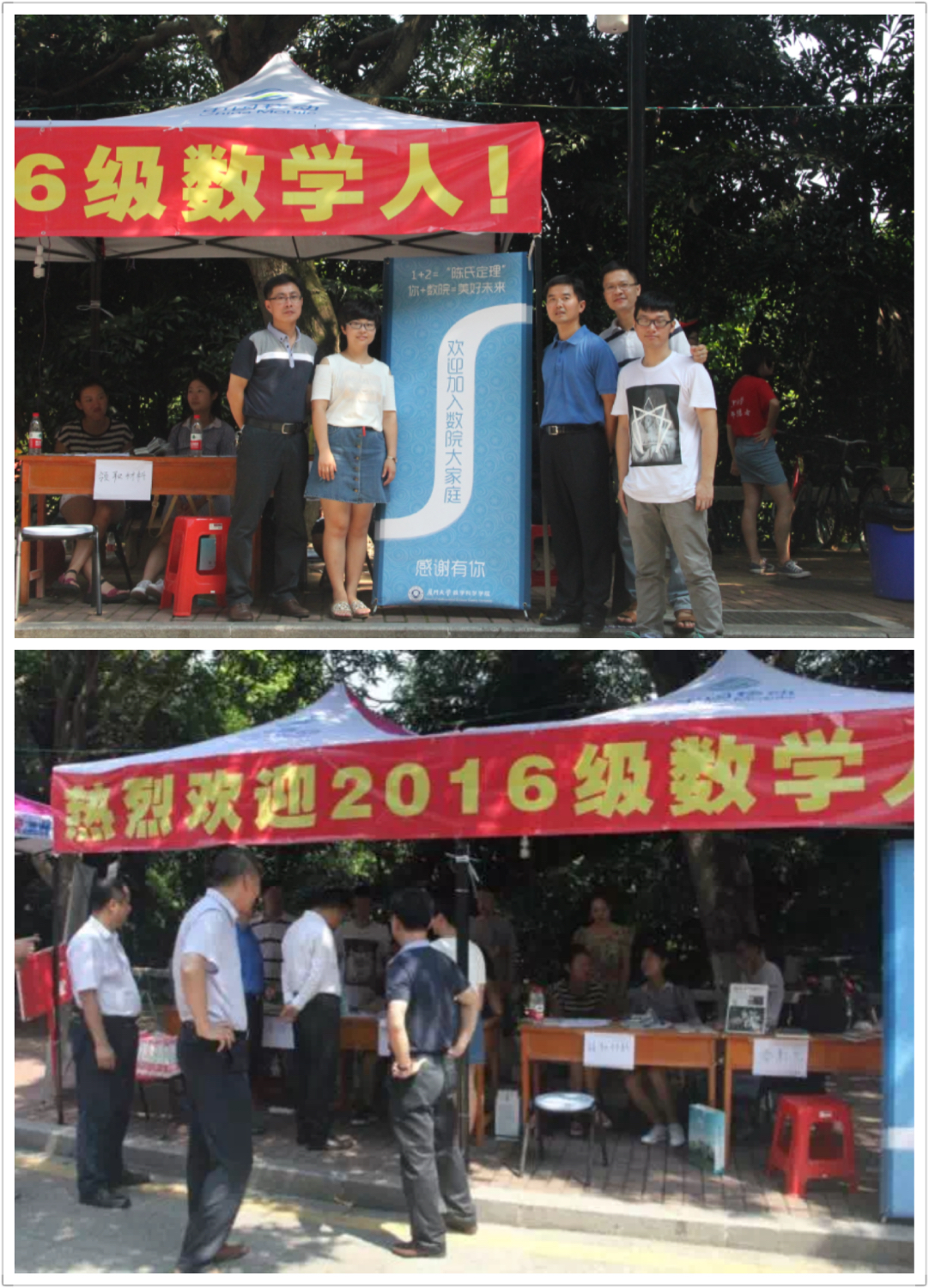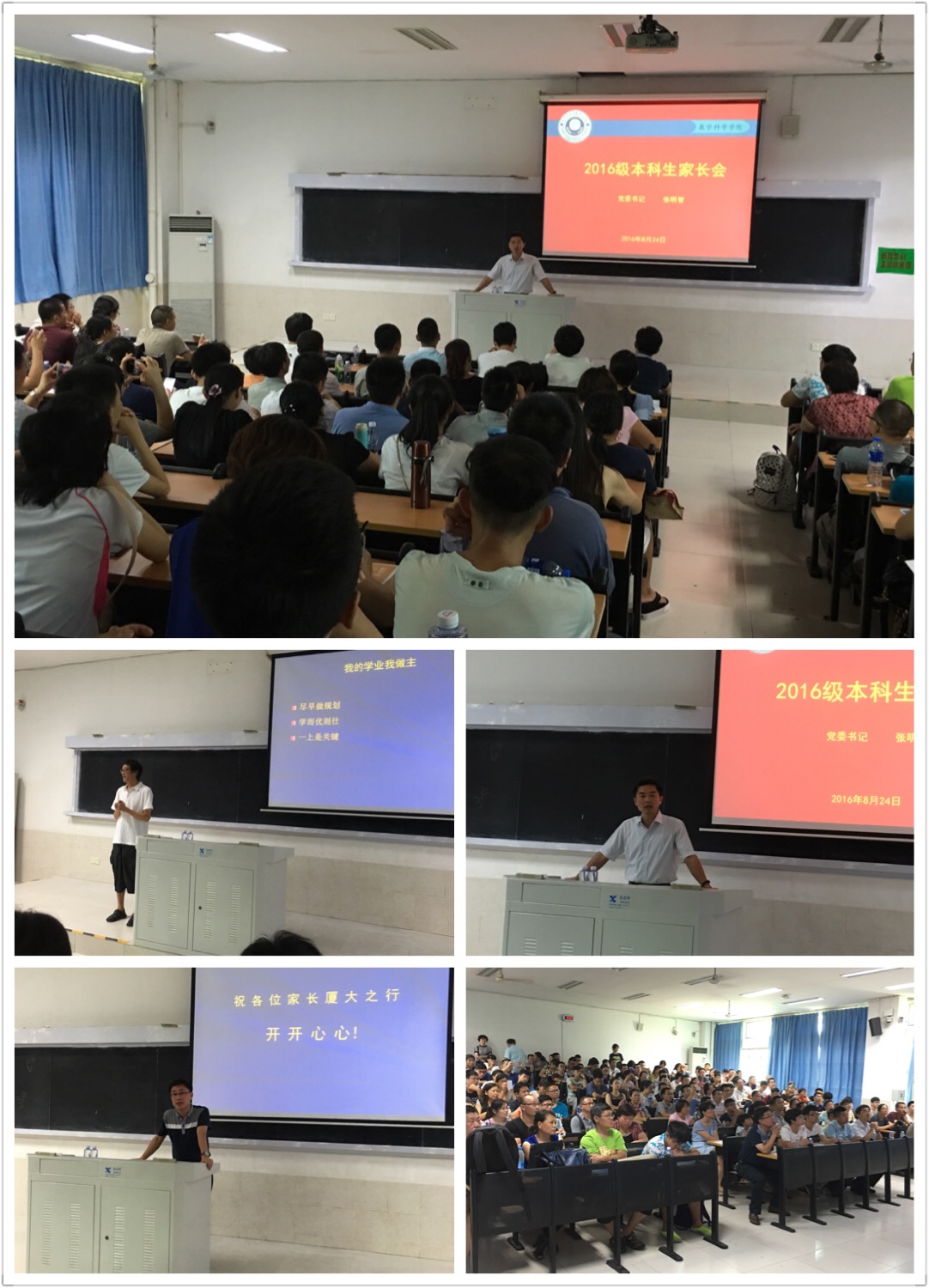 下午的迎新点依旧热闹非凡。三点半,2016级新生家长会在学生公寓105成功召开,由院党委副书记张剑文老师主持。副院长钱建国老师向新生及家长介绍了大学四年的规划,党委书记张明智老师介绍了星空(中国)概况、新生信息以及典型学生案例,使全体新生及家长对数学专业大学四年的学习生活有了基本的认识。