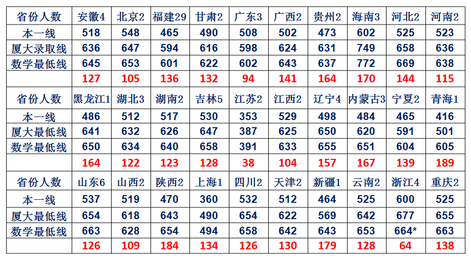 注:标注*为高水平艺术团考生。红色数字表示最低录取分数高出当地本一线分数。