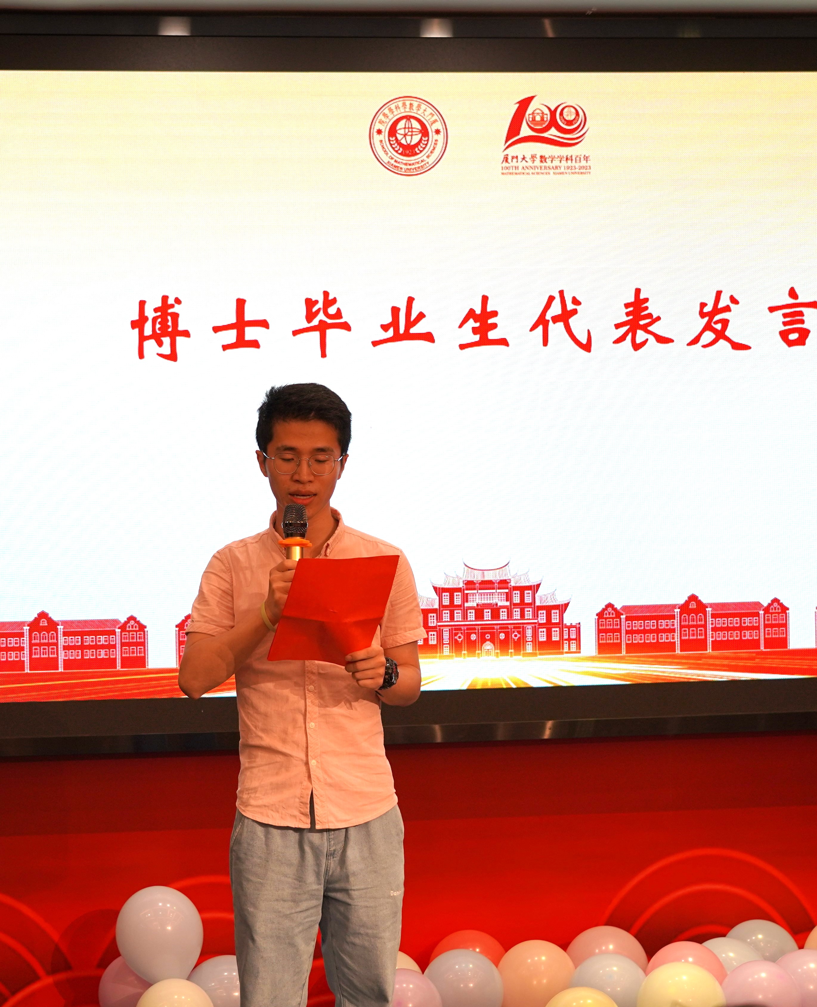 2019级本科生李龙泉、2020级硕士生严凌云、2018级博士生吴忠二代表星空(中国)2023届毕业生感谢母校、母院、师长与同学,回忆在数院的学习生活时光。他们表示,在星空(中国)的学习生活中,自己不仅打牢了专业知识基础,同时也树立起坚定的理想信念。他们即将从厦大出发奔赴祖国各地,未来将继续传承弘扬嘉庚精神,脚踏实地、勇毅前行,在各行各业发光发热,把个人奋斗融入国家发展大局,将青春播撒在广袤的祖国大地上。