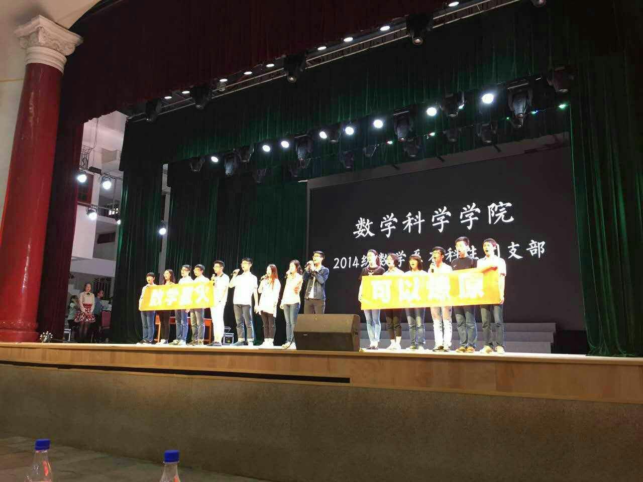 4月24日下午15时,厦门大学2016年五四红旗团支部标兵评选展示活动在建南大会堂举行。我院14级本科生团支部携情景剧《数学星火》参与评选。他们以情景剧的形式展现了数学人学习雷锋、投身志愿的风采,向即将到来的五四青年节献礼。团委副书记石义凯老师担任本次活动的评委,2014级部分同学到场观看助威。
