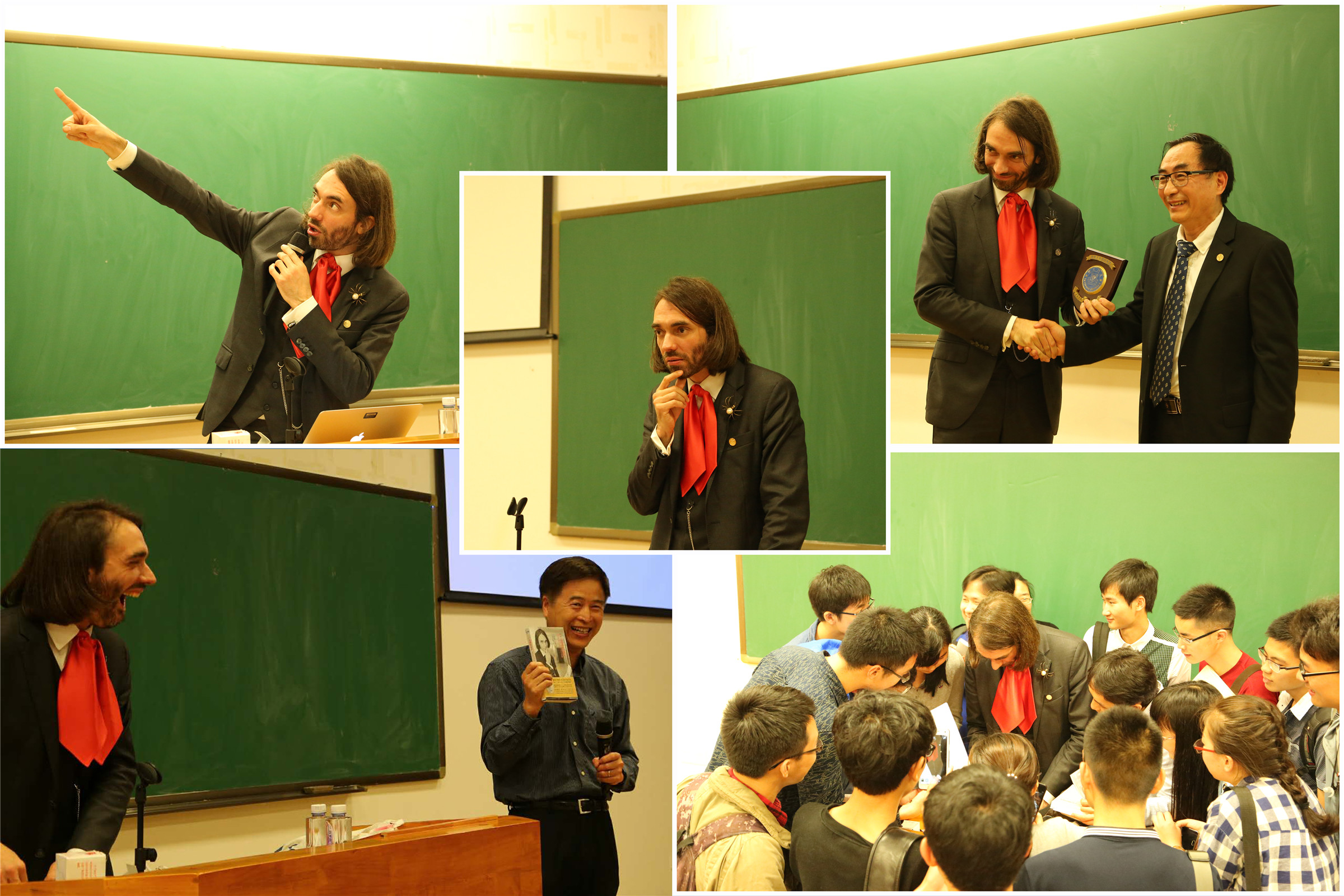 Cédric Villani教授是继丘成桐教授、Efim I Zelmanov教授后第三位到我校讲学的菲尔兹奖获得者。这位披着长发、带着领花、别着蜘蛛胸针,并被称为“数学界的摇滚明星”的年轻数学家,不仅打破数学人孤独、古怪的刻板印象,更是努力尝试打破数学与世人的隔阂,展现数学之美。他的讲座信息一经公布,即在全校师生中刮起了一阵“追星”旋风,部分师生专门购买Cédric Villani教授撰写的《一个定理的诞生——我与菲尔兹奖的一千个日夜》英文版和中译本排着长队请他签名。举办Cédric Villani教授学术报告会,为师生与菲尔兹奖获得者近距离交流、开展国际学术科研合作搭建了平台,同时也提升了学生学习数学的兴趣,扩展了师生的学术视野。