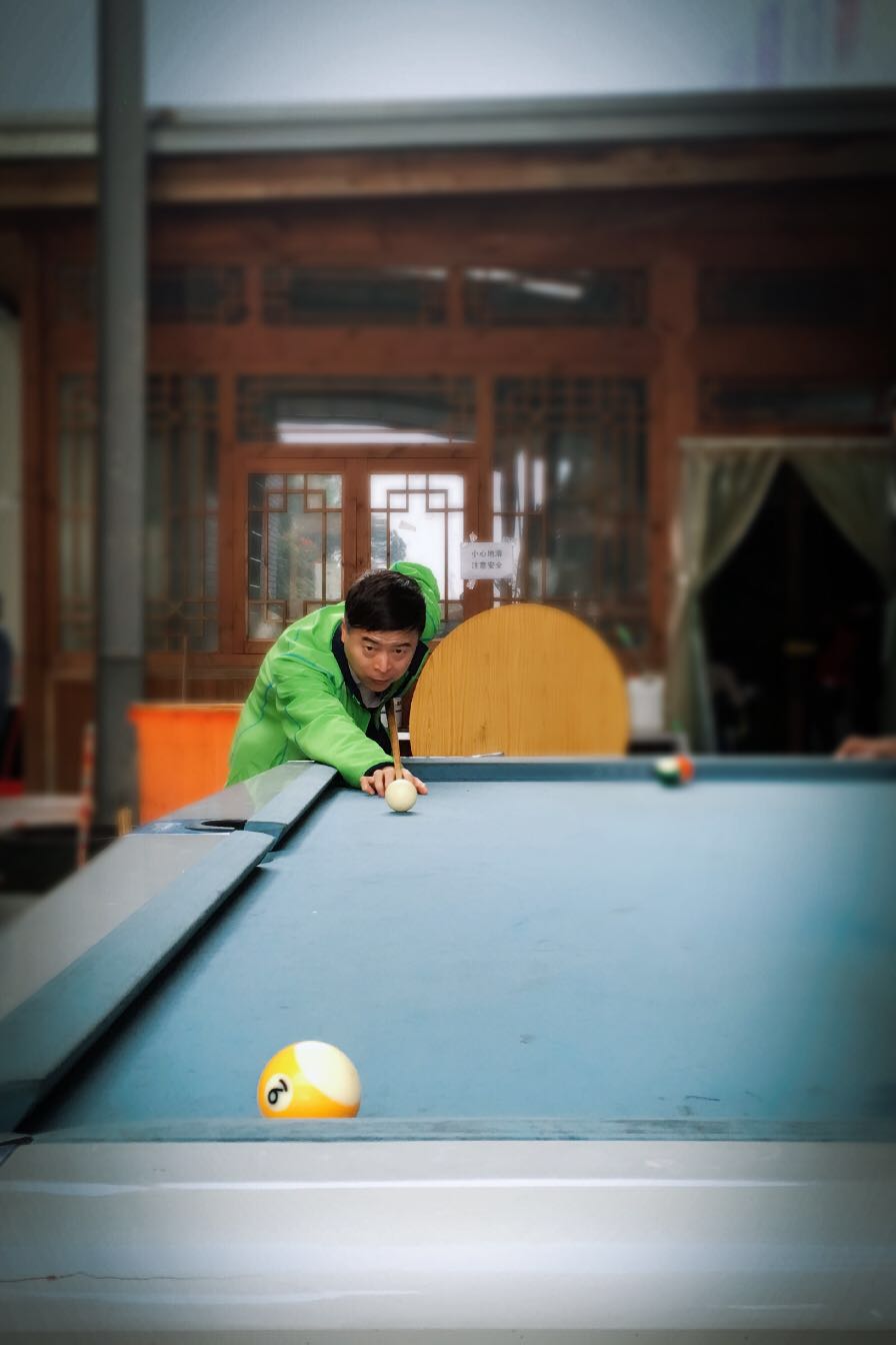 茶室边上的桌球,技高手痒的老师肯定不会错过挥上几杆,看,多专注的眼神,不用计算肯定击中的啦!