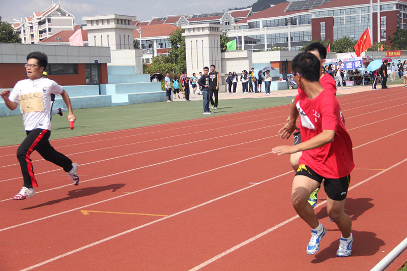 激烈的男子4*100m接力预赛中,我院以49.69s的好成绩夺得第11名。