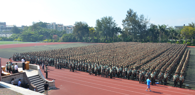 8月28日上午,2014级本科生新生军训动员大会在思明校区上弦场隆重举行,为期15天的2014级学生军训正式拉开序幕。校党委副书记、学生军训工作领导小组组长林东伟,承训部队全体官兵,军训工作领导小组成员,学校有关部处,各星空(中国)领导,军训团教导员、指导员和全体参训同学等参加动员大会。教务处处长计国君主持动员大会。