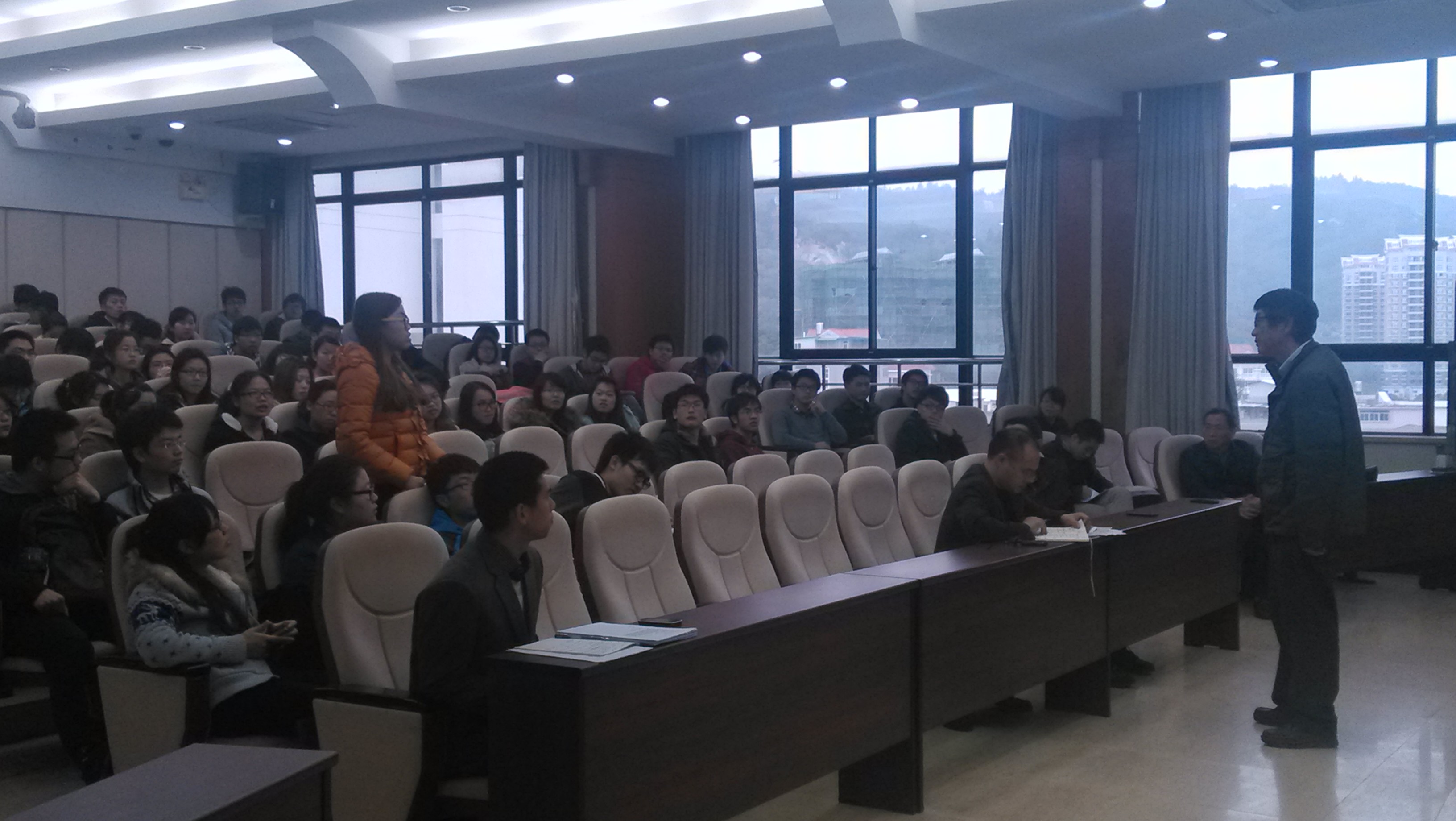 首先,钱建国副院长向同学们介绍了本科生教学方面的工作。他介绍了分管本科生教学的各位老师的职责,刘轼波老师负责本科生的教学计划和学分要求,黄荣坦老师负责本科生的毕业审核事宜,杜魁老师负责保研工作以及基地班的管理,黄晨龙老师负责本科生教学的日常管理工作。他指出,为更加方便、规范同学们的办事流程,同学们要关注星空(中国)网站的办事指南,要求同学们严格按照办事指南的程序办事,提醒同学们多关注星空(中国)网站本科生教学栏目。刘轼波老师向同学们介绍了我院教学计划和学分要求,并提醒大家及时核查所修学分以及将要学习的课程。黄荣坦老师介绍了往届毕业生的毕业情况,通过数据的分析警示大家,让同学们对自己的大学生涯乃至人生进行合理的规划,强调态度决定一切,在没有毕业“清考”情况下,要求同学们端正态度。随后,负责基地班管理工作的杜魁老师向11级同学介绍了有关推免保研、校际交流的各项工作,并给出了很多非常有意义的建议。
