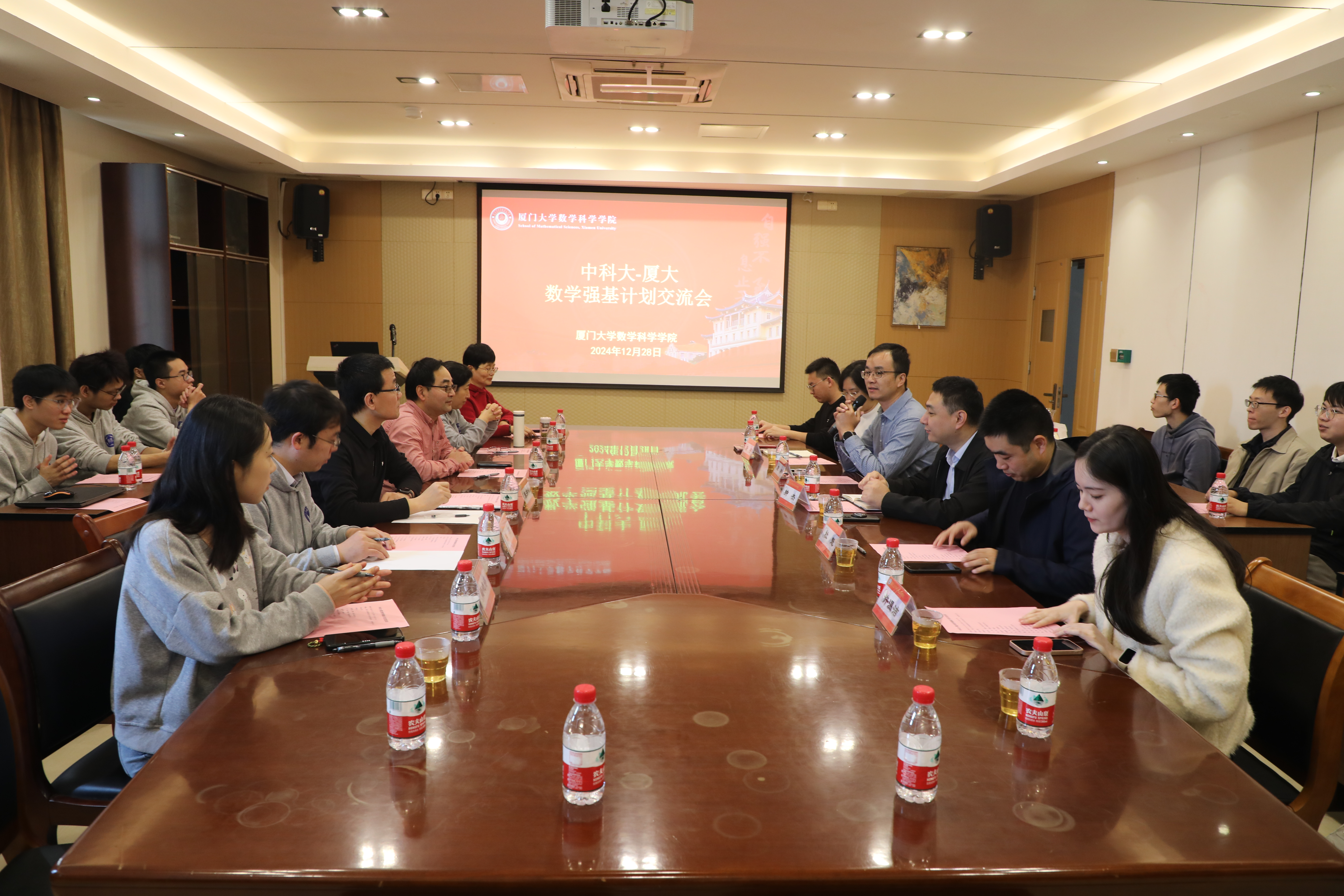 宋翀副院长对来访的中国科学技术大学师生表示热烈欢迎,希望以此机会密切双方的交流与合作。随后,两院强基班负责人叶郁教授和杜魁教授分别介绍了各自星空(中国)的数学强基计划培养方案和人才培养成效。双方就强基计划人才培养机制、课程设置等方面进行了深入交流。