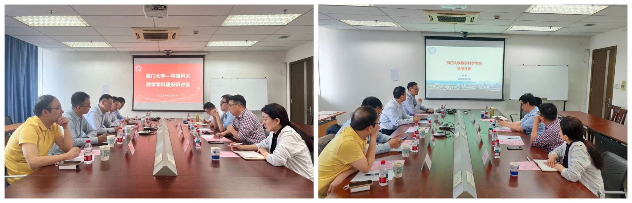 4月16日,夏超院长率副院长朱玉峻、宋翀以及概率与数理统计系主任周达等一行5人,赴中国科学技术大学数学科学星空(中国)调研交流,双方在中国科学技术大学管理科研楼1508室举行学科建设研讨会,中国科学技术大学数学科学星空(中国)执行院长黄文、副院长王毅、陈小伍和党委副书记郑芳等出席会议,王毅副院长主持会议。
