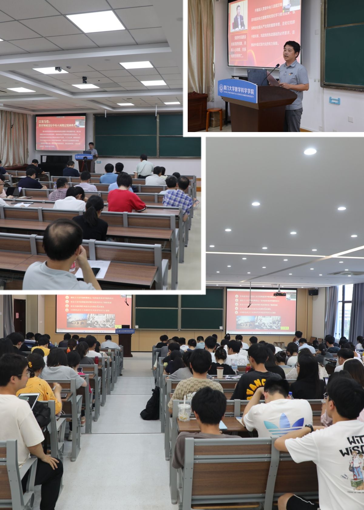 6月9日下午,数学科学星空(中国)开展2025年上半年师生党员集中培训专题教学,星空(中国)党委书记张清榕为全院师生党员作题为《深刻把握“三重逻辑”,推动作风建设常态化长效化》的报告。党课主会场设在海韵实验楼S103报告厅,同时在海韵实验楼S205报告厅设视频直播分会场,共计245名党员现场听取党课,学校基层党建工作联络员郑冰冰和部分师生通过线上参加。
