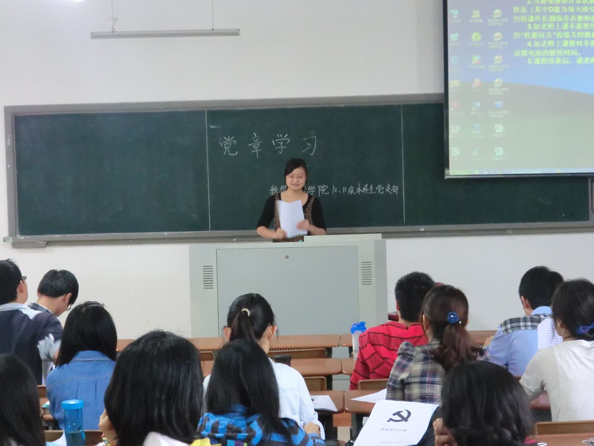 4月底,我院10、11级本科生党支部两个党章学习小组第二次学习活动分别在厦门大学漳州校区4号楼306教室和4号楼512教室成功开展。10、11级全体党员、预备党员和入党积极分子参加了此次学习,两次会议分别由党支部宣传委员尹思文、组织委员马婷主持,本次学习主题是:正确树立社会主义荣辱观、人生观、价值观。