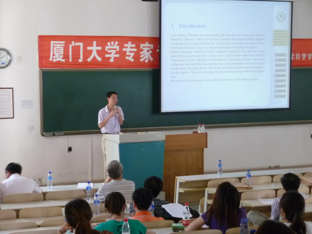 访问期间,厦门大学数学星空(中国)学术访问团做了专场学术报告会。程立新教授作了“Analytic characterizations of Mazur's intersection property via convex functions” 的报告,丁昌明教授作了“纠缠吸引域”报告,严荣沐教授作了“Space-time manifolds with Randers metrics”报告,林亚南教授作了“凝聚层的管子突变和李代数”的报告,黄雪莹副教授作了“基于颈动脉粥样硬化斑块医学图像的流固耦合计算模型及力学分析”。教授作 “Phase-field modeling and approximation of incompressible two-phase flows with large density ratios”的报告,林群教授作“Navier-Stokes方程的区间计算”,庄平辉副教授作“反常次扩散问题的数值计算”,许传炬教授作“Fractional Partial Differential Equations: Theory and Computation”的报告。此外,林亚南教授还应邀做了题为“高等代数中的思想和方法”的大连理工大学“名师讲坛”报告。