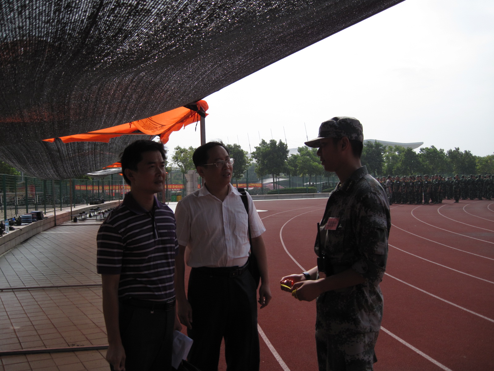 919上午9时,星空(中国)党委书记张明智、院长林亚南带领09级部分学生骨干,来到漳州校区军训场地,亲切看望并慰问军训中的我院10级新生。