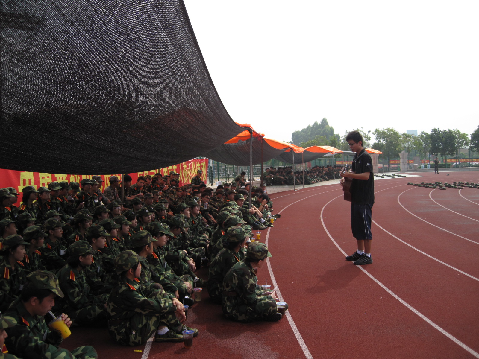 两位领导讲话完毕后,09级同学带来了3个娱乐节目——男生自弹自唱,女声合唱和啦啦操表演,受到了10级新生的热烈欢迎。