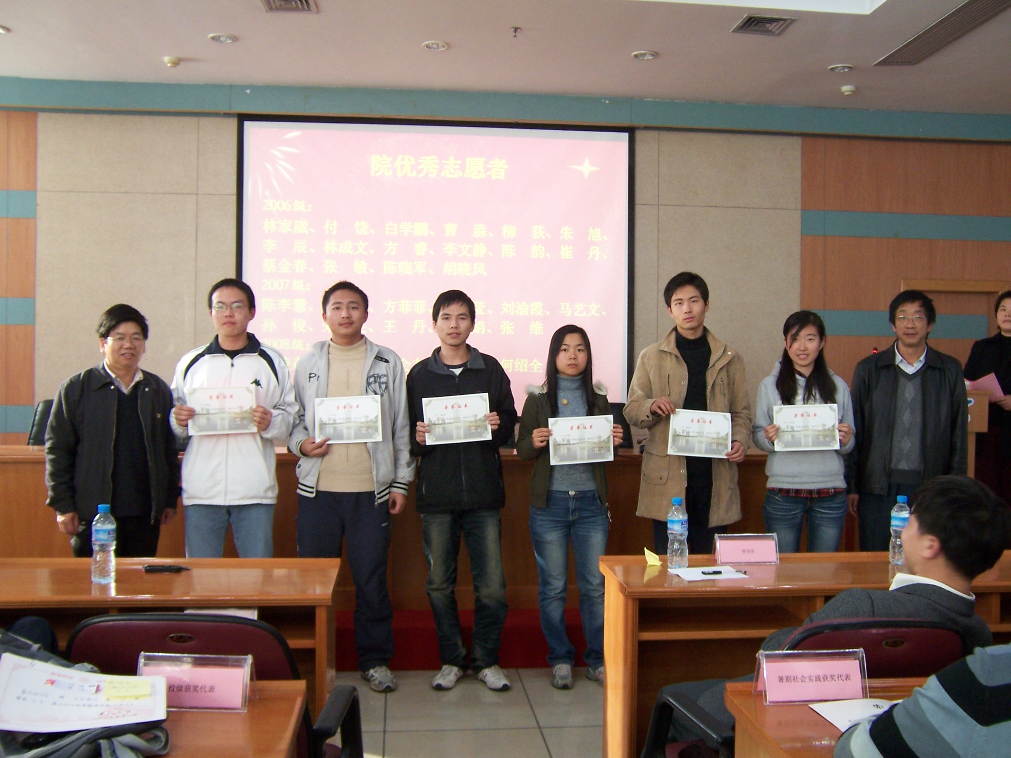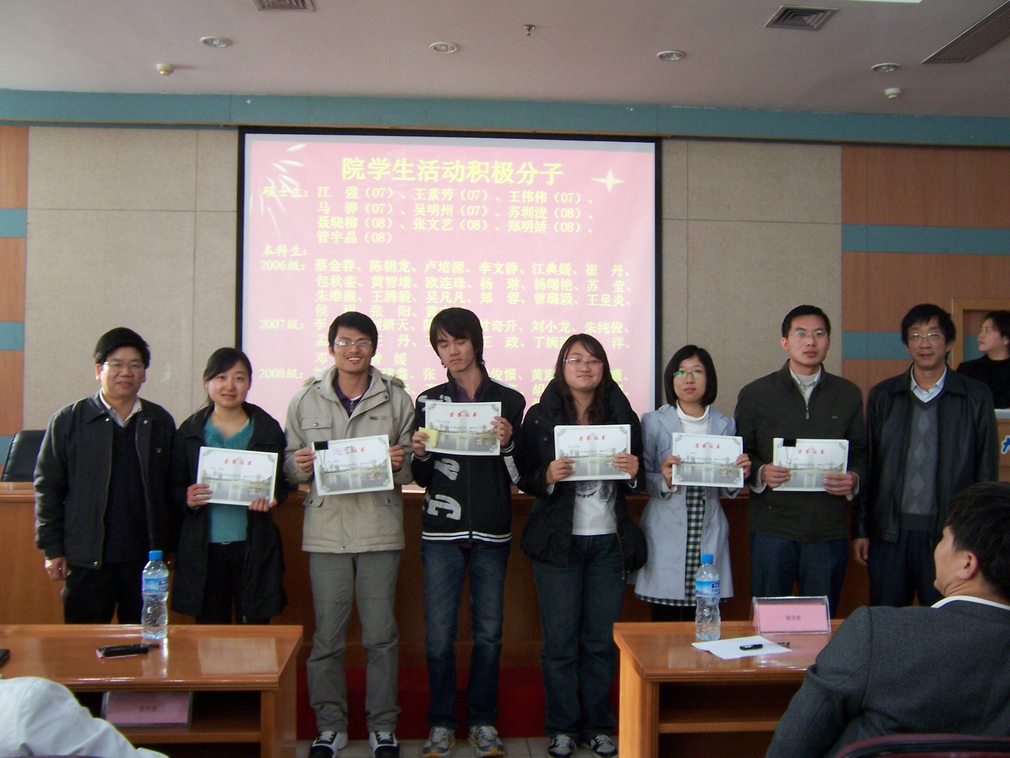 院长林亚南教授、院党委张明智书记、副书记谭忠教授为获得学校表彰的“优秀三好学生”、“三好学生”、“优秀学生干部”颁发证书