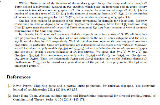 报告题目:Tutte polynomial of an Eulerian graph