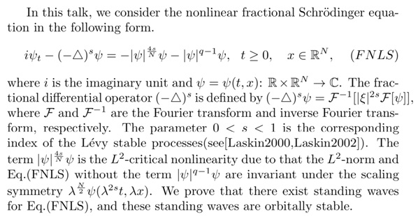 报告题目:Stability of Standing Waves for the Fractional Schrodinger Equations
