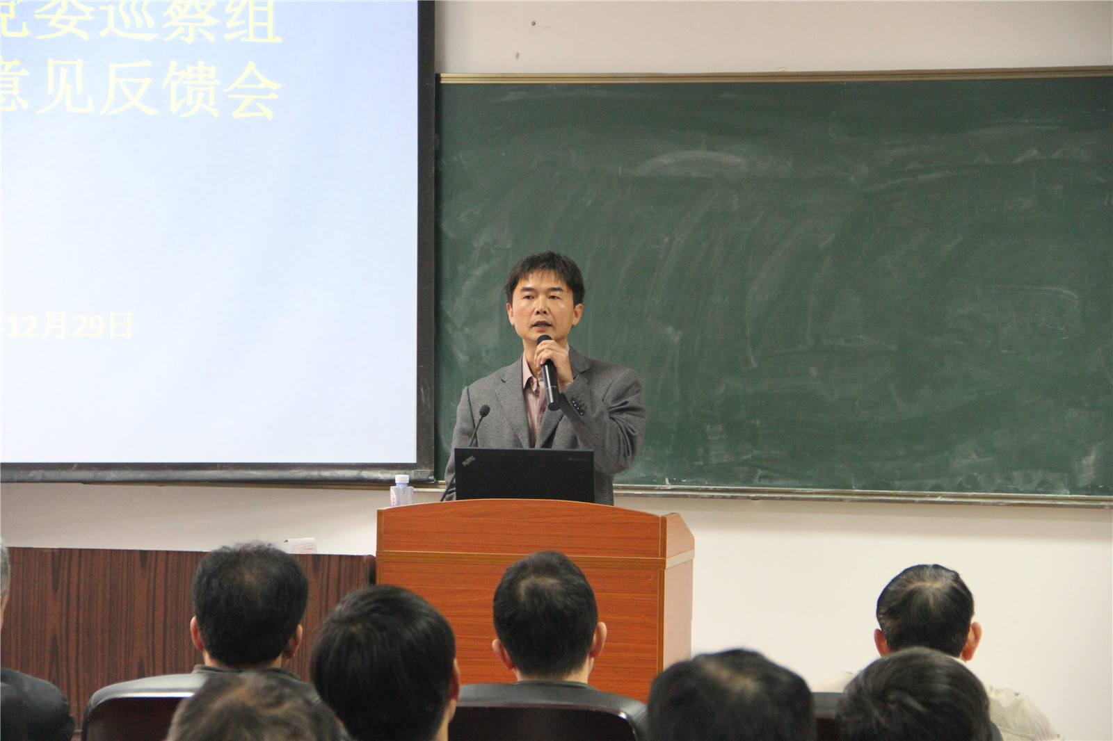 1229日上午800,厦门大学党委巡察组对数学科学星空(中国)巡察工作意见反馈会在实验楼105教室召开,学校巡察组、星空(中国)党政班子、全院教职工参加,院长林亚南主持会议。