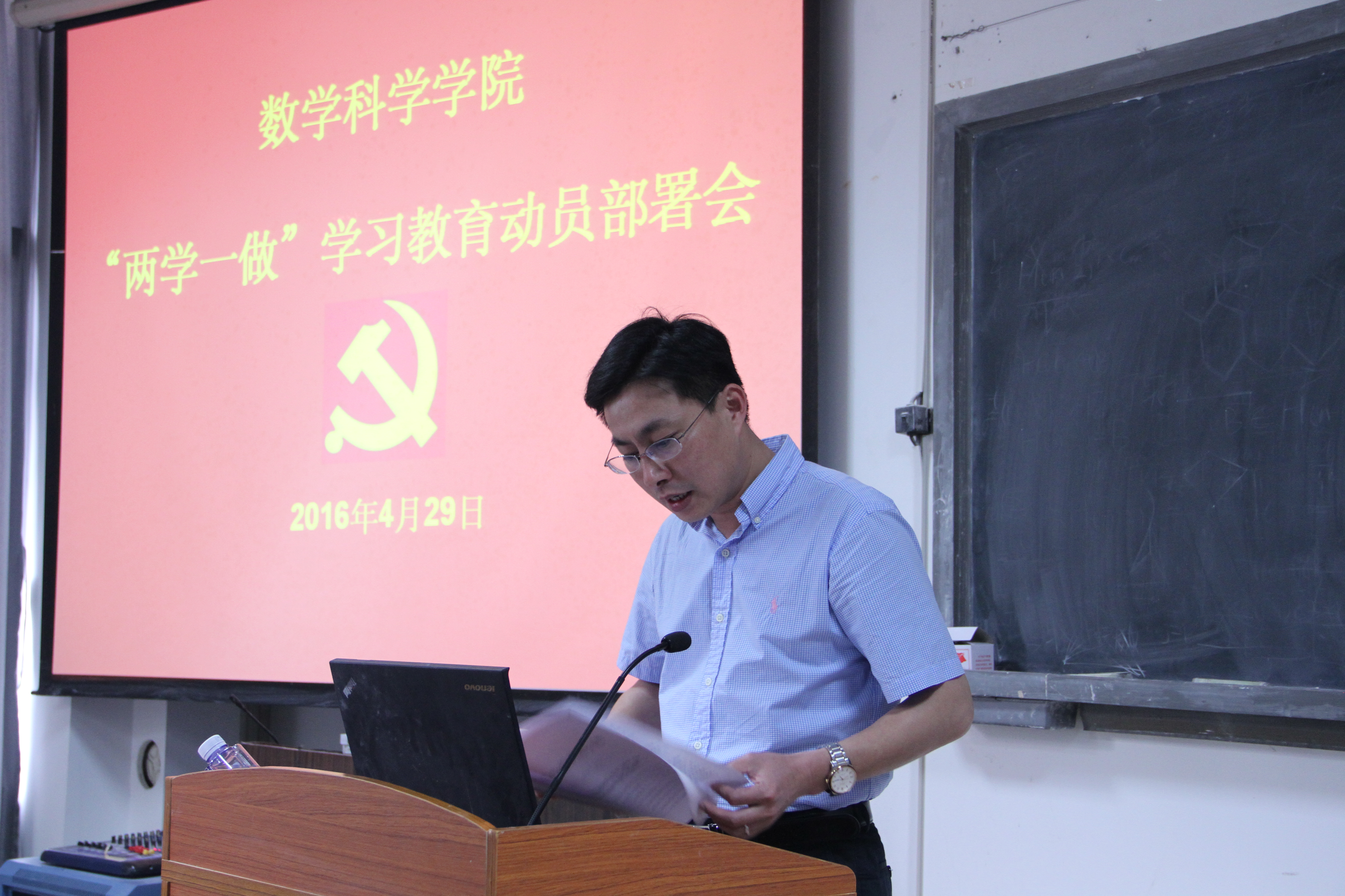 张剑文副书记传达中共中央组织部印发《“两学一做”学习安排的具体方案》文件精神和《厦门大学关于在全校党员中开展“学党章党规、学系列讲话,做合格党员”学习教育实施方案》的重要内容。他强调各支部开展学习教育前要认真领会上述两个文件精神,明确上级组织对“两学一做”学习教育的具体要求,制定好本支部的实施方案,确保“两学一做”学习教育顺利开展,取得实际效果。