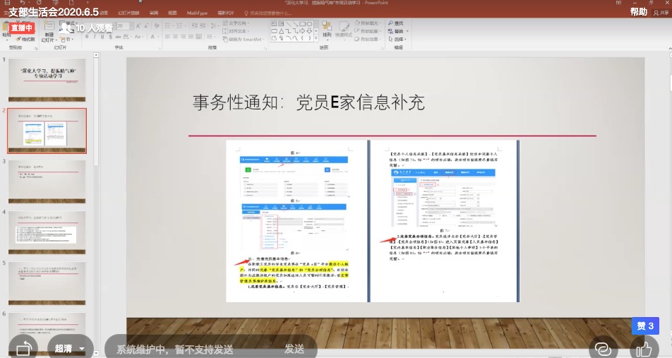 6月5日上午,教师第三党支部用钉钉直播的方式开展了“深化大学习 提振精气神”的专项学习活动。