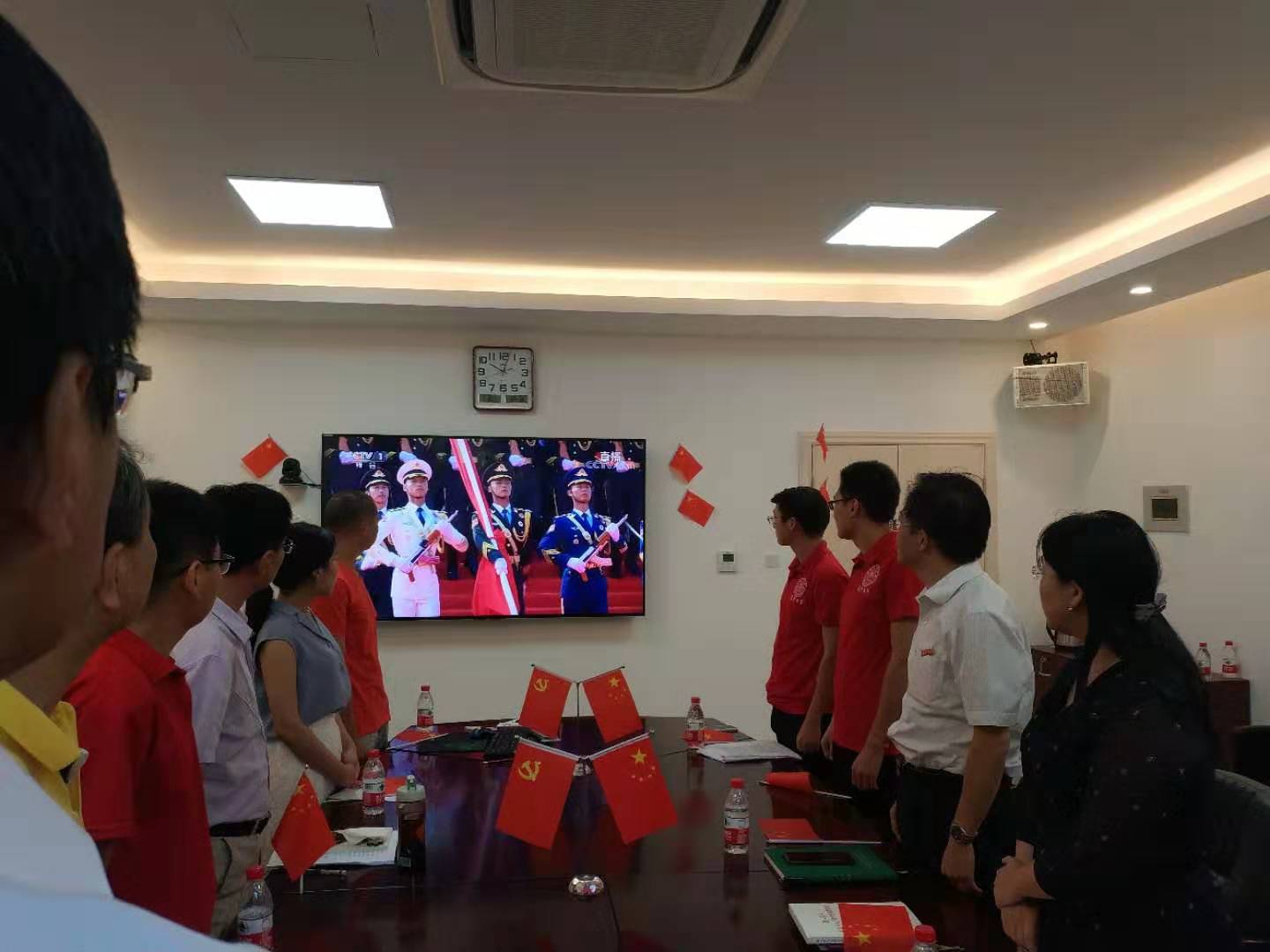 上午九点,星空(中国)313会议室、海韵园学生公寓党员服务站同时组织师生集中观看70周年国庆庆祝活动直播。院领导、党支部书记、师生党员代表和当天清晨参加学校升旗仪式的师生代表济济一堂,认真听取习近平总书记在庆祝中华人民共和国成立70周年大会上的重要讲话,观看庆祝大会及阅兵式盛况,感受新中国成立70年来所取得的伟大成就,大家心潮澎湃、倍感振奋,挥舞手中的国旗齐唱国歌,为祖国喝彩、向伟大的中国共产党致敬。壮丽70年,奋进新时代,大家为中华民族伟大复兴的光辉历程深感自豪,纷纷表示要与新中国共发展,与新时代齐奋进,不忘初心、牢记使命,在推进“双一流”建设、实现“两个一百年”奋斗目标”的新征程中砥砺前行、作出新贡献。