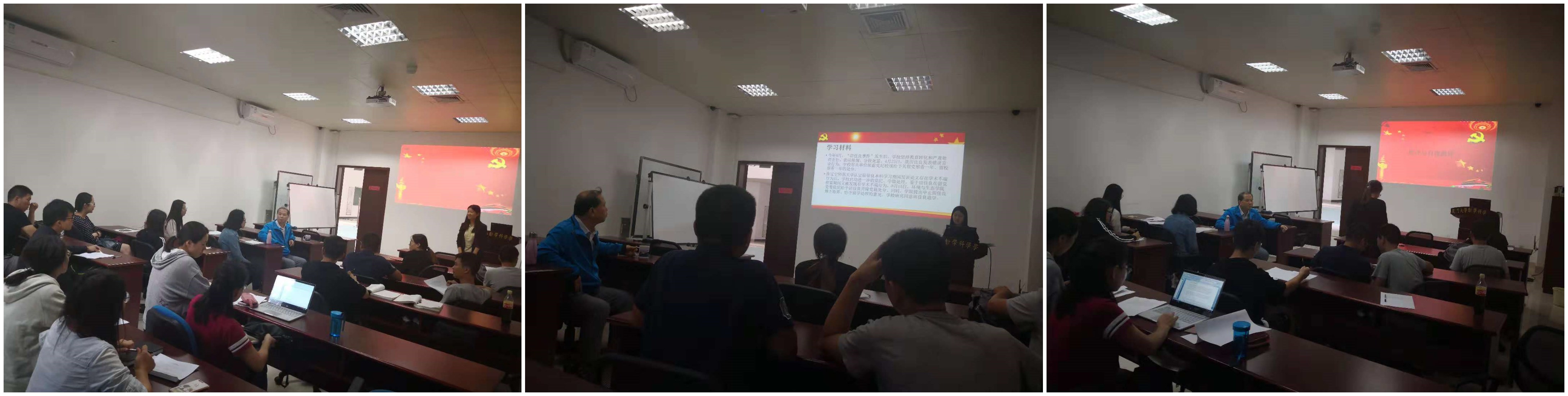 首先 党支部书记汪洋带领党员集体学习了学校近期重要会议和上级有关文件精神。接下来,支部书记对近段支部工作进行报告,提出支部目前所存在的问题及有待改进的地方,以及相应的改进措施。在支部班子成员的带头下,党员们开展了自我批评,发表了对支部以及其他成员的意见建议。