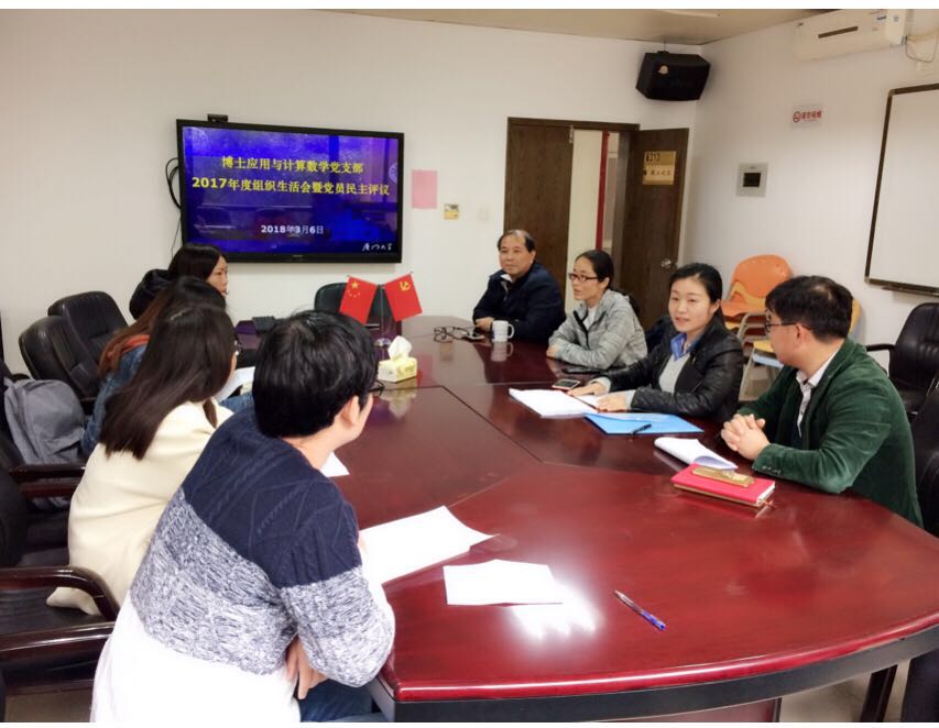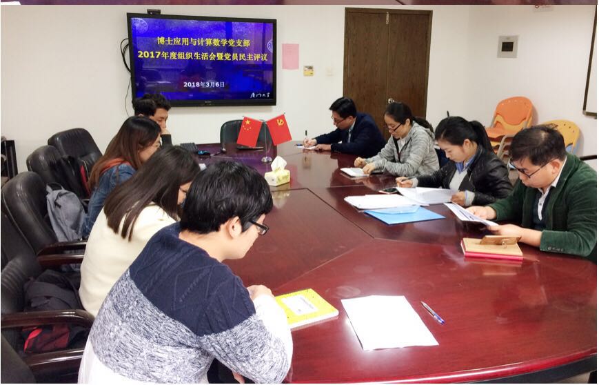2018年3月6日下午,博士应用与计算党支部在行政楼313会议室召开2017年度组织生活会,开展党员民主评议。会议由支部书记张明玉主持,星空(中国)党委副书记陈国强、副院长张剑文出席会议并讲话。