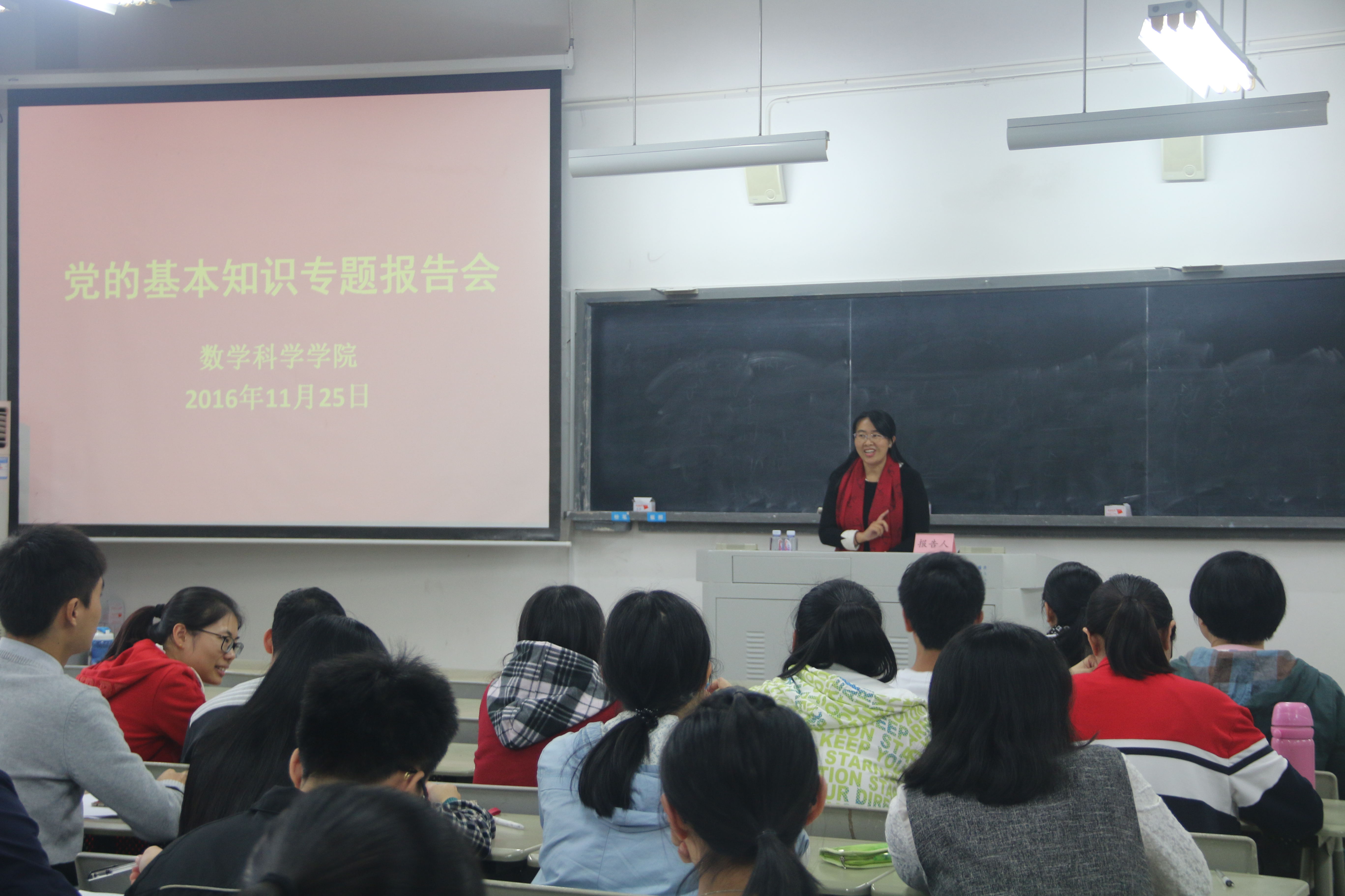 11月25日下午,星空(中国)在海韵教学楼201教室举办党的基本知识专题报告会,校党委组织部副部长廖志丹以《践行“两学一做”,争做时代先锋》为题作报告。星空(中国)党委副书记刘宁主持报告会,全院学生党员、入党积极分子、教师党员代表一百四十余人到场听取报告。