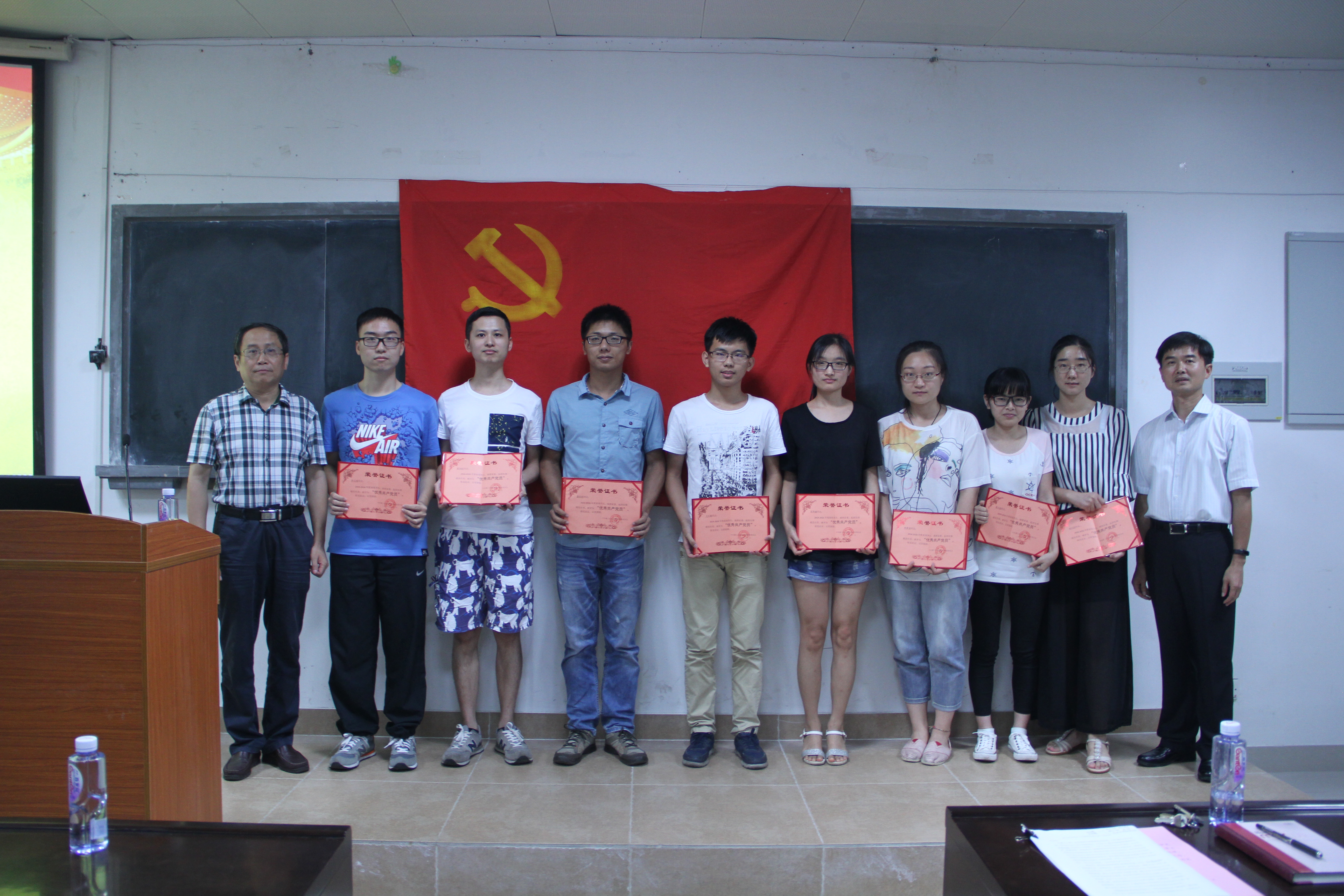 会议对2014至2016年度表现突出的党员进行了表彰,党委副书记张剑文宣读了表彰决定,决定授予24名党员“优秀共产党员”称号,院长林亚南、党委书记张明智共同为获奖师生代表颁发荣誉证书。