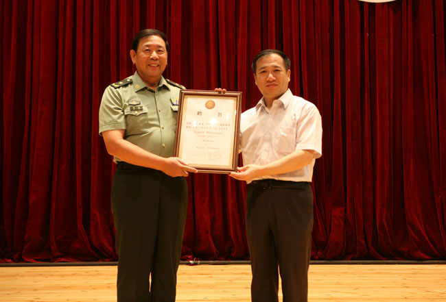 5月28日下午,军事科星空(中国)罗援少将作客我校党校名家讲坛,带来题为《我国周边安全环境及软实力建设》的精彩讲座。讲座开始之前,校党委书记杨振斌为罗援少将颁授厦门大学兼职教授证书。校党委副书记陈力文主持报告会。