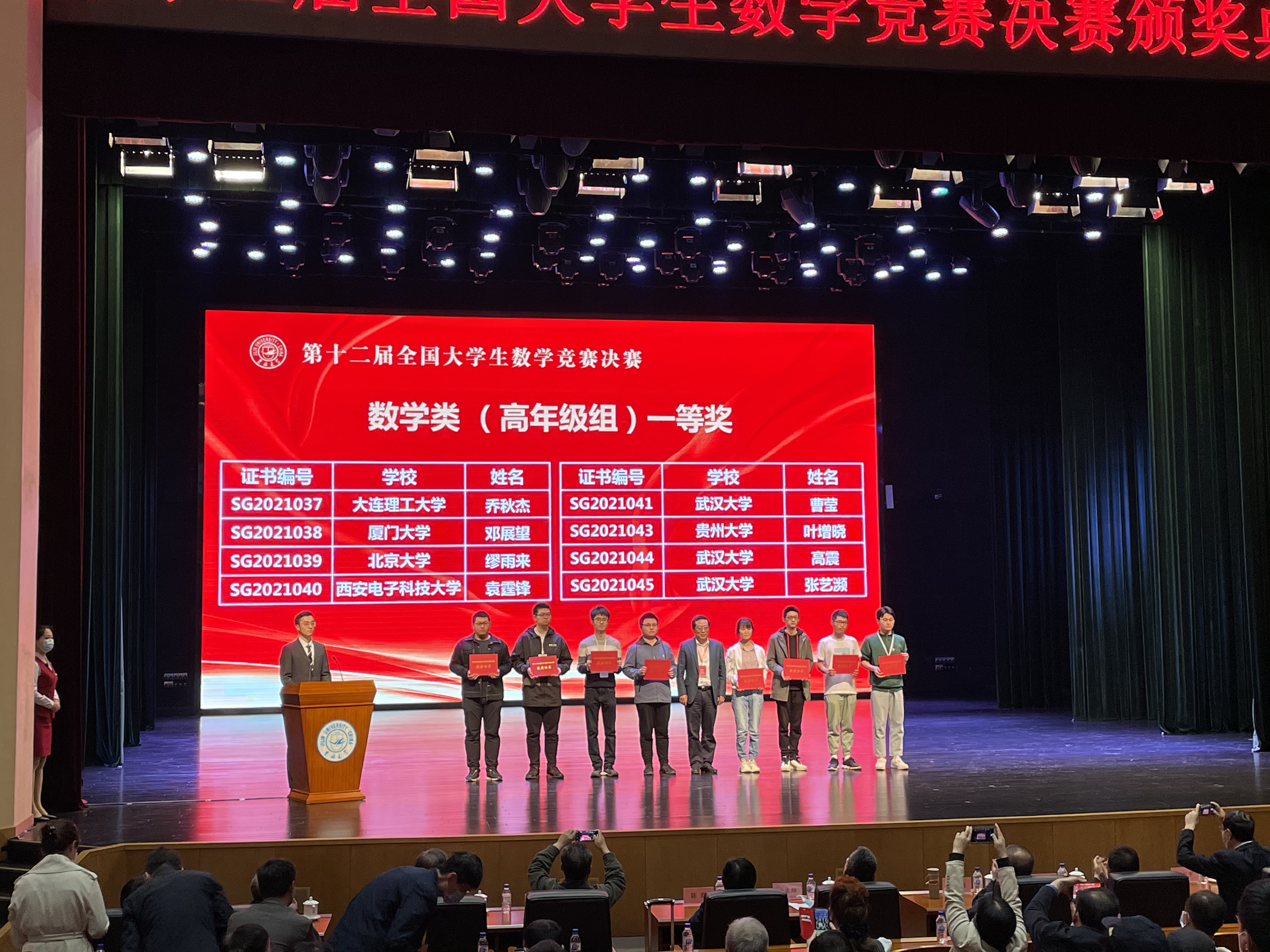 5月14日至16日,第十二届全国大学生数学竞赛决赛在吉林大学举行。我校十名本科生参赛并获得一等奖2项,二等奖6项,三等奖2项。