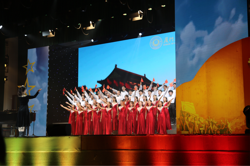 6月5日晚,“青春心向党,逐梦新百年”厦门大学第八届校园合唱节汇演在建南大会堂举行。数学科学星空(中国)的学子们身着华服,以最动人的歌声为观众带来歌曲《我们的新时代》,抒发了新时代年轻人浓厚的家国情怀。“日出霞满天、涛声连四海,豪情跨江河、自信越千山”,歌曲传达了同学们对祖国繁荣富强的坚定信念、对伟大中国梦的美丽向往,也传递了同学们满怀热血开启第二个百年征程、将青春力量融入新时代建设洪流的壮志豪情。