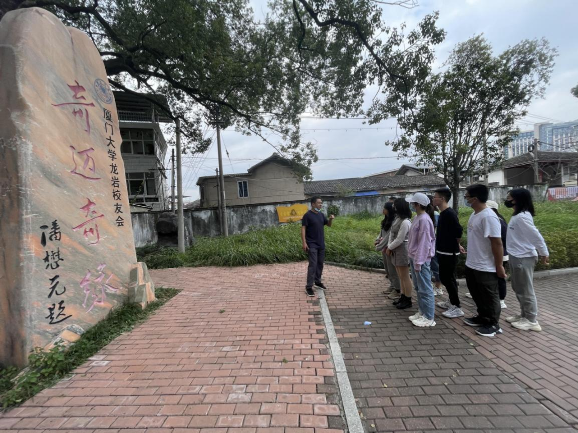 厦门大学龙岩办学旧址位于如今的龙岩市东肖镇。在纪念碑前,林智雄向同学们讲述了厦门大学在50年代初的特殊背景下迁移至龙岩市短暂办学的历史。“奇迈奇缘”的纪念石碑,记录了厦门大学在龙岩的峥嵘岁月,凝聚着老一辈厦大人艰苦办学、勇于奋斗的革命乐观精神。