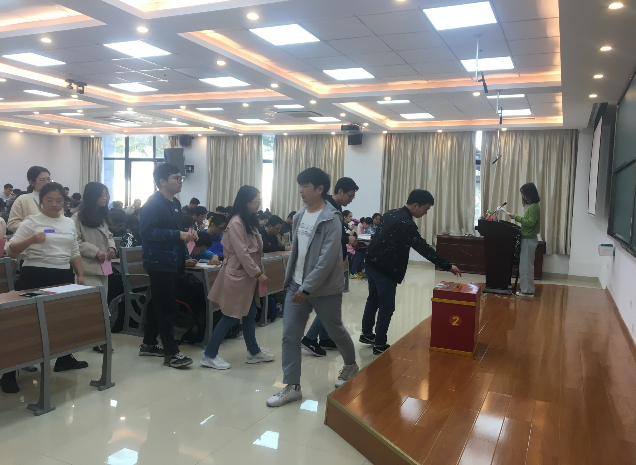 石义凯老师向团员介绍了代表候选人情况,使团员们对候选人更加了解,团员开始进行无记名投票。